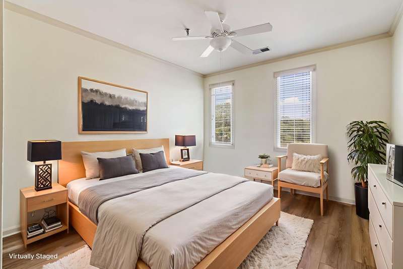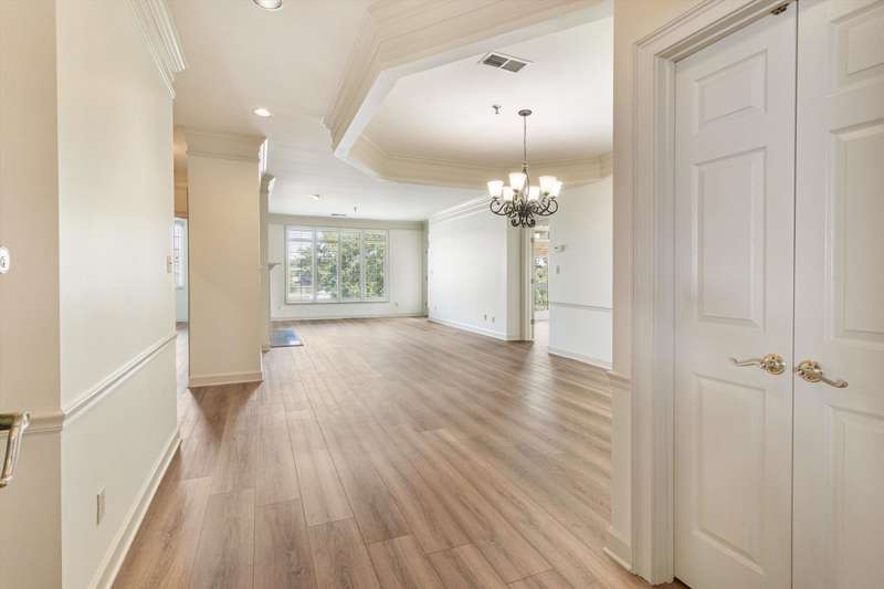 Rarely available top-floor unit! Vacant, easy to show, Motivated Seller. The Terraces at Laurelwood w/Renovated Baths! Totally secure, quiet, convenient AND on the 4th floor with no neighbors above you! Great mix of owners - from retired to younger who want security or lock and leave! The 4 story Lobby/Atrium will set the initial tone and walking into this particular unit will enhance your feeling of space open floor plan, owner removed columns giving you a clear view plus adding Luxury Vinyl Plank Flooring as part of a lengthy list of upgrades and improvements ($30,000). Primary Bath was also renovated/updated to add a Walk-In Shower! New AC! New Blinds! Fresh Paint! Where else are you going to find COVERED and SECURE Parking and Storage with Cameras! Owner events include luncheons and get-togethers. Community Room off Lobby + Guest Suite!