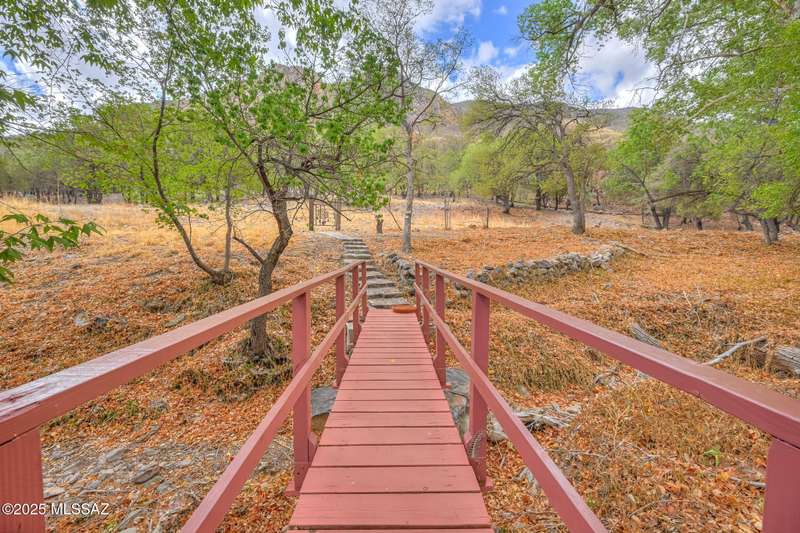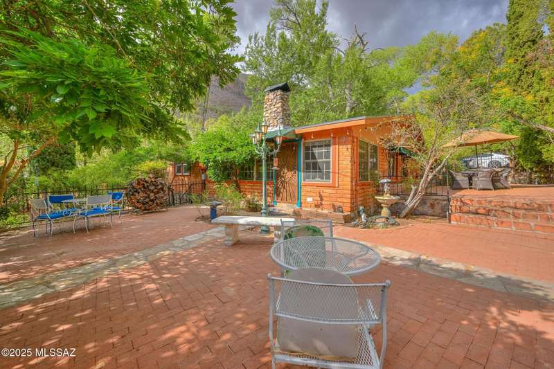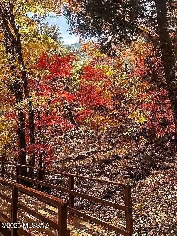 Live in absolute timeless beauty in this 1930s gem nestled on over 4 wooded acres bordering Coronado National Forest. This 3BD/2BA, 2,400 SF retreat features slate & wood floors, a 1934 rock fireplace, 4-season AZ Room, and primary suite w/gorgeous bathroom, clawfoot tub, and stunning views from a private deck. The custom European-style kitchen offers cherry cabinetry, wine cooler, and pantry w/rotating shelves. Enjoy abundant wildlife, amazing seasonal creek, irrigated fruit orchard, (50 trees), she shed, for entertaining and enjoyment. A birder's paradise in Ramsey Canyon beside the Arizona Folklore preserve. and walking distance to Nature Conservancy. This private outdoor sanctuary offers rich soil, 3 wells, and one-of-a-kind charm.