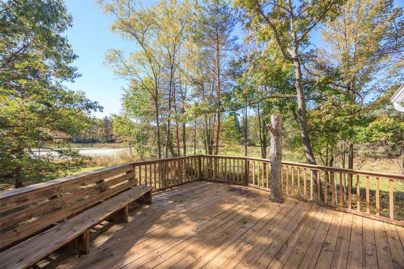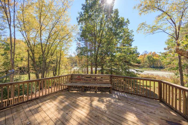 Welcome to this charming farmhouse nestled on an extraordinary peninsula lot, completely surrounded by serene water views and mature trees. This private, nature-filled retreat offers the perfect blend of seclusion and convenience—just a short drive to downtown Howell and all nearby amenities. Step inside to discover spacious living spaces with walkout access to incredible deck spaces on both floors. Whether you're enjoying your morning coffee or entertaining guests, the upper and lower decks offer breathtaking panoramic views of the peaceful pond and vibrant woodlands. Nature lovers will be captivated by the scenery from every angle—watch the seasons change right from your own backyard! The home’s unique layout provides flexibility and comfort, while the expansive outdoor areas invite endless opportunities for relaxation, play, and wildlife watching.