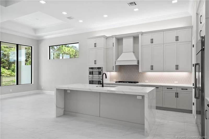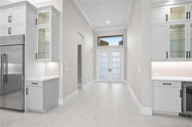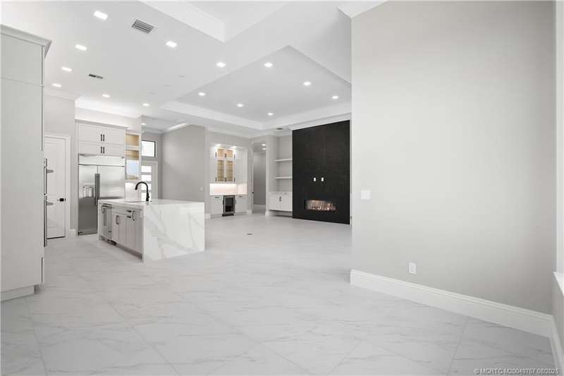 Located in the prestigious Tesoro Club, this exceptional residence features a striking contemporary front elevation. Based on the Stella model, this residence boasts impressive high-volume ceilings and a chef’s kitchen with top-of-the-line Café appliances, including a spacious 42-inch built-in refrigerator. The kitchen is designed for functionality and style, featuring an oversized central island with a stunning 2.5-inch waterfall edge, a walk-in pantry with custom shelving, and stacked cabinets above a natural gas cooktop. The great room is a focal point of the home, enhanced by an electric fireplace surrounded by elegant tiling, creating an inviting and sophisticated atmosphere. The backyard is perfect for entertaining, complete with a luxurious pool and a travertine paver patio and pool deck that elevate outdoor living!