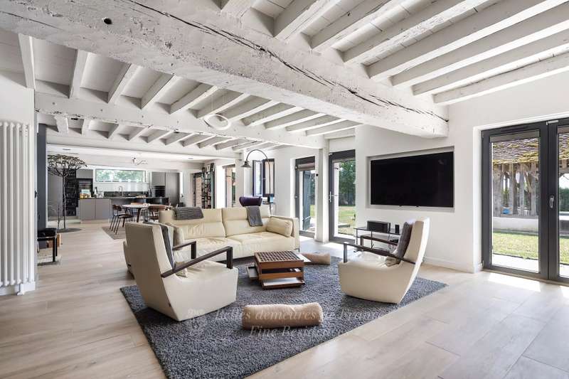 Sole Agent. 45-page detailed file on request. Just 1h30 from Paris and 20 minutes from Nogent-le-Rotrou railway station. This character property is nestled at the bottom of a peaceful little track in the heart of the beautiful Perche area particularly keenly sought-after for its unspoilt rolling countryside and its delightful little villages. Meticulously restored throughout allying authenticity with modern comfort, a near 210 sqm main house includes a superb 90 sqm living/reception room bathed in sunshine and featuring a monumental fireplace, an open-plan kitchen, a library area, and a bedroom with a bathroom and dressing room. Upstairs are four further bedrooms and a bathroom. The ensemble is set in 4000 sqm of leafy grounds with a 3.50 x 10 metre heated swimming pool, an 80 sqm open barn, an orchard, an old well and a natural mere. A delightful country home.