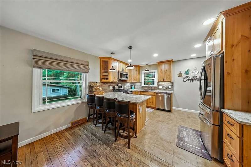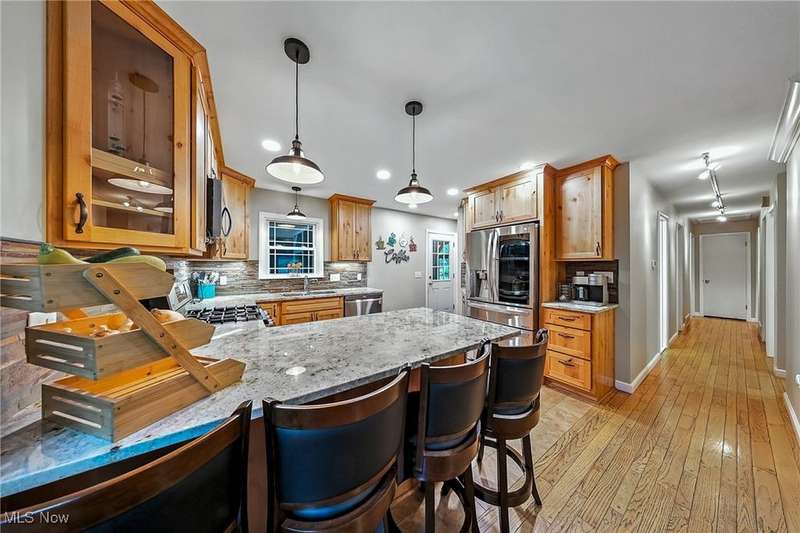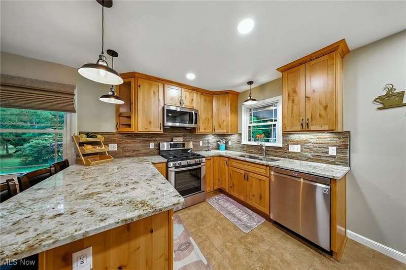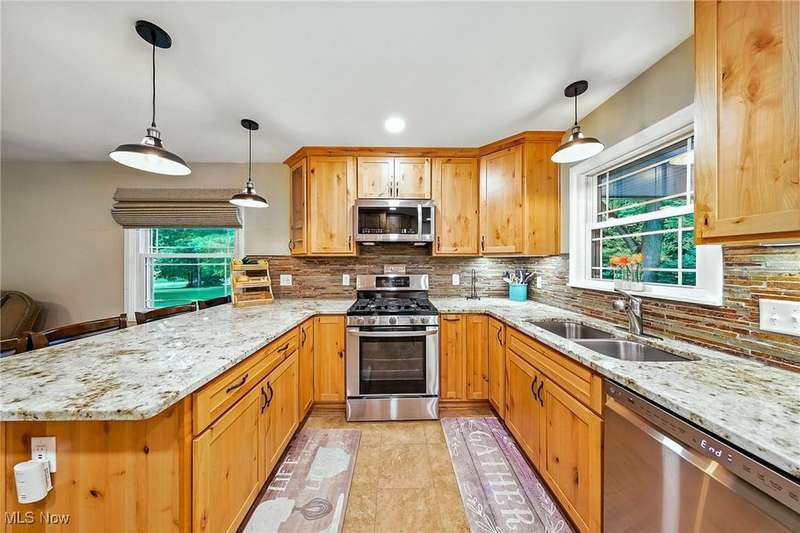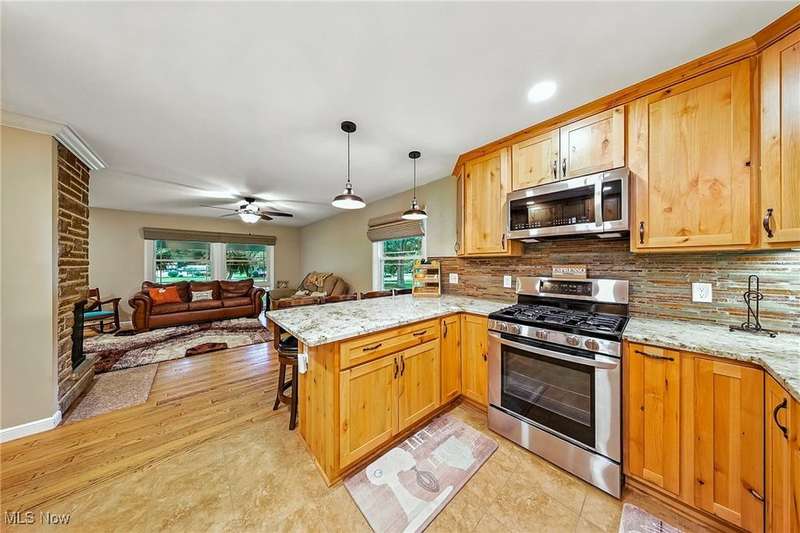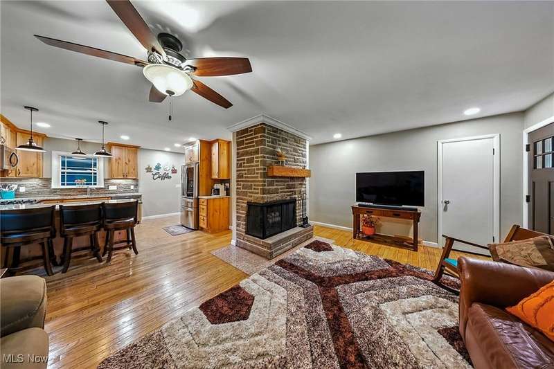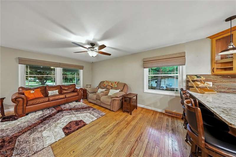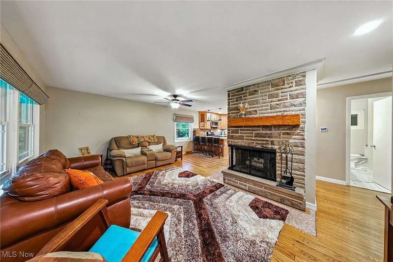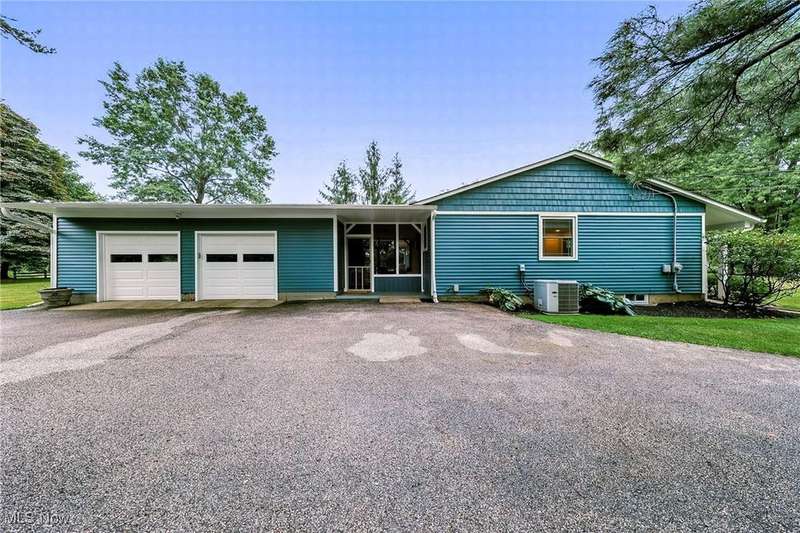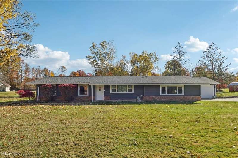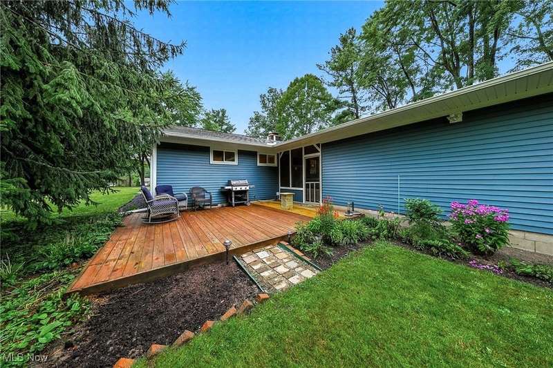 New Price: $375,000! Beautifully updated 4-bedroom, 2-bath ranch in South Russell Village on a private wooded 1-acre lot. Offering over 2,000 sq ft including the basement, this cozy home features hardwood floors, a spacious family room with brick wood-burning fireplace, and a fully renovated Kitchen (2020) with granite countertops, KraftMaid soft-close cabinetry, added insulation, and stainless steel LG appliances. Enjoy true one-floor living with all 4 bedrooms on the main level. The finished basement provides a large rec room, office area, abundant storage, laundry with newer washer & dryer, and a second updated full bath. Step outside to a large deck with gas grill overlooking the serene backyard, or relax in the screened breezeway connecting to the oversized 2.5-car garage (616 sq ft) with new doors (2024). Major other updates include: siding (2024), windows, reverse osmosis filtration system (2024), rebuilt softener (2023), repaved/sealed driveway (2025), grinder pump (2025), paint & landscaping (2025), and waterproofing with transferable lifetime warranty (2020). Located in the award-winning Chagrin Falls School District and close to shopping, dining, entertainment and parks. Includes a 1-year HSA Home Warranty. Schedule your private showing today before it's sold!