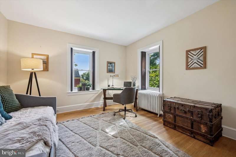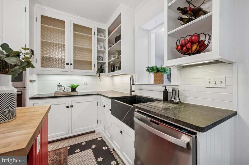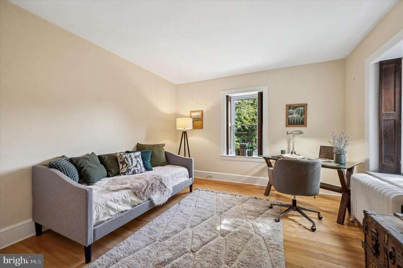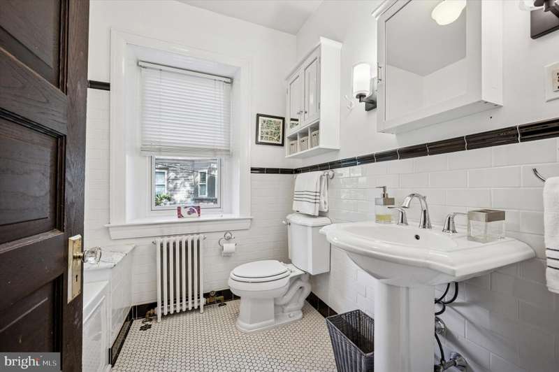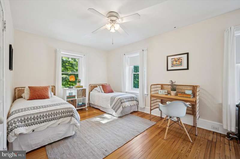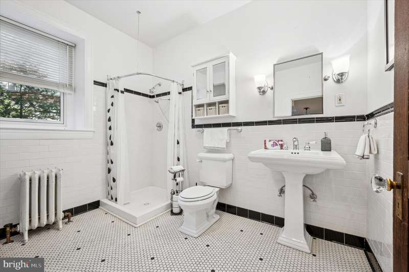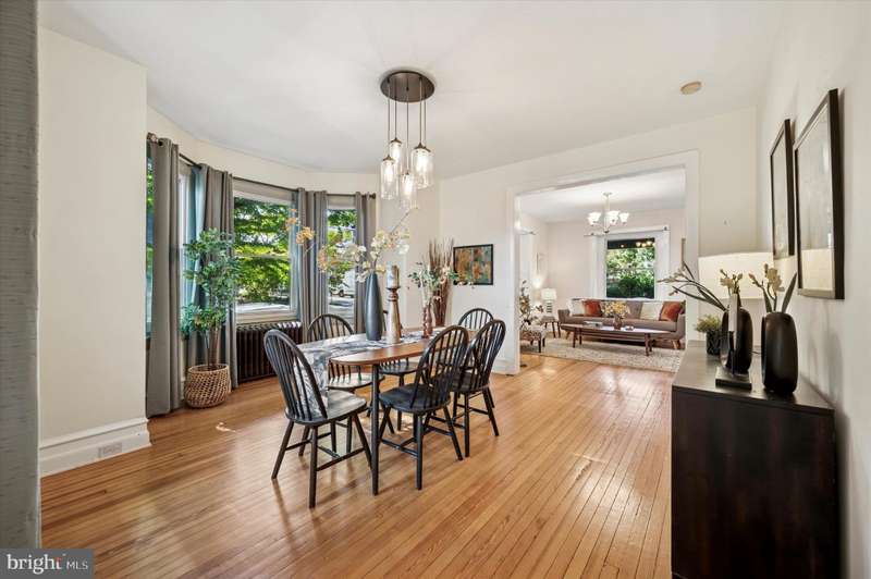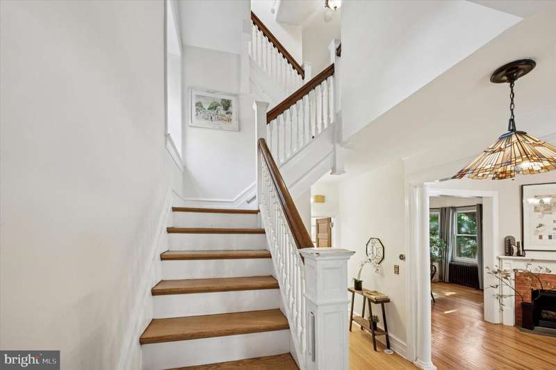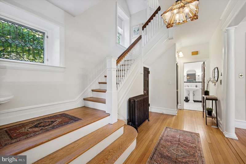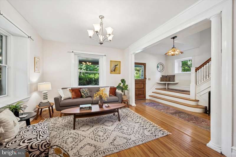 Tucked behind a charming white picket fence and lush landscaping, this beautiful 5 bed, 3 bath Wissahickon Schist Dutch Colonial home feels like something out of the Secret Garden. A wraparound porch welcomes you home, inviting slow mornings with coffee and breezy afternoons surrounded by the vibrant greenery. Step inside to a warm and inviting entry foyer that leads to a light-filled living room, where a gas fireplace sets the scene for cozy evenings. The dining room glows with natural light from its elegant bay window, and the modern kitchen, with its soapstone countertops, stainless steel appliances, and spacious island dares you to entertain. Beyond the kitchen, a versatile mudroom or den opens onto a patio overlooking the enchanting garden. Mature fig, peach, and persimmon trees as well as year-round foliage including hydrangeas, roses, and lilies, create a private, leafy retreat that feels worlds away, even though you're just ablock from Chestnut Hill's shops, restaurants, and community events. The first floor also features a combination full bathroom and laundry. The sweet corner seat while you head upstairs is another reminder of the charm and whimsy of this home. The second floor hosts three generous bedrooms, one with a reading nook with a built-in bench, and all with ample closets. The large full bathroom off the hallway has a tub that's perfect for unwinding after a long day. The third floor is a serene escape, featuring a primary suite with two closets and en suite bath, plus an additional bedroom lined with a wall of closets. Additional highlights include dual zoned high velocity forced air, radiator heat, and hardwood floors throughout,a full height, unfinished basement with tons of storage, a detached garage, and a private driveway with room for three cars. 200 E Gravers Lane is a reminder that everyday can feel magical.