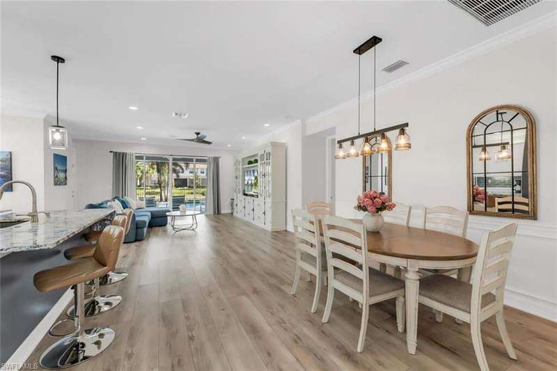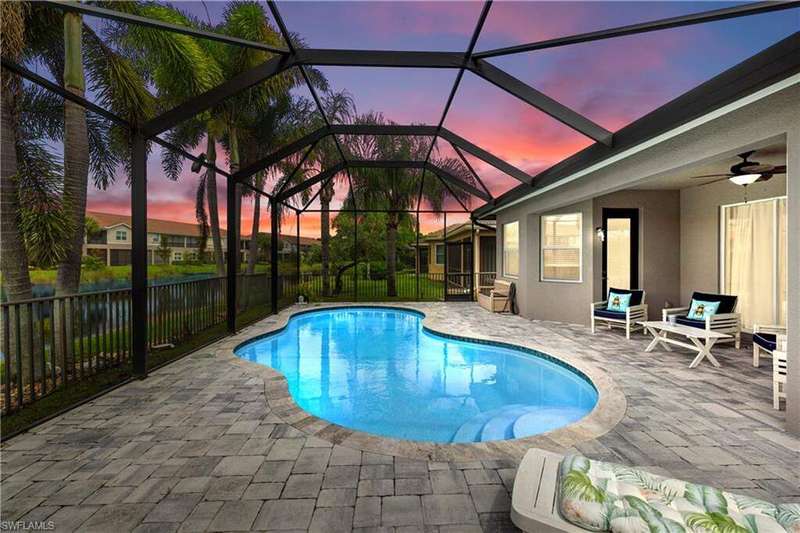 Stunning Lakefront Pool Home in Marbella Lakes - Fully Renovated with Over $250K in Designer Finishes and Upgrades! This 4bed + loft/den, 4-bath home offers Luxury living with Wide-Plank LVP flooring, 14' tray ceilings, and Crown molding throughout. The open-concept Chef's kitchen features White Shaker High End Wood cabinets, level 5 Quartz countertops, Monogram appliances, walk-in pantry, and a massive 8' Island. The spacious Primary suite boasts Lake views, a coffered ceiling, Dual Quartz vanities, a soaking tub, and a Glass barn-door shower. Enjoy the Newly resurfaced heated Saltwater Pool, new paver deck, and screened lanai-ideal for entertaining. Garage features custom SwissTrax flooring. Whole-home Water Filtration System included. Marbella Lakes offers low HOA fees with access to world-class amenities including a resort-style pool, modern fitness center, tennis and pickleball courts, basketball, billiards, a children's play area, and an active social calendar. Don't miss this rare opportunity to own a meticulously renovated lakefront pool home in central Naples-minutes from beautiful beaches, shopping, dining, and top-rated schools.