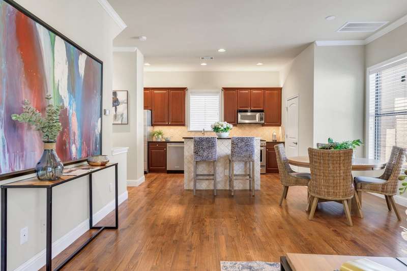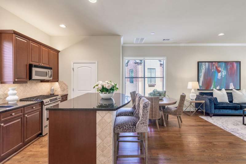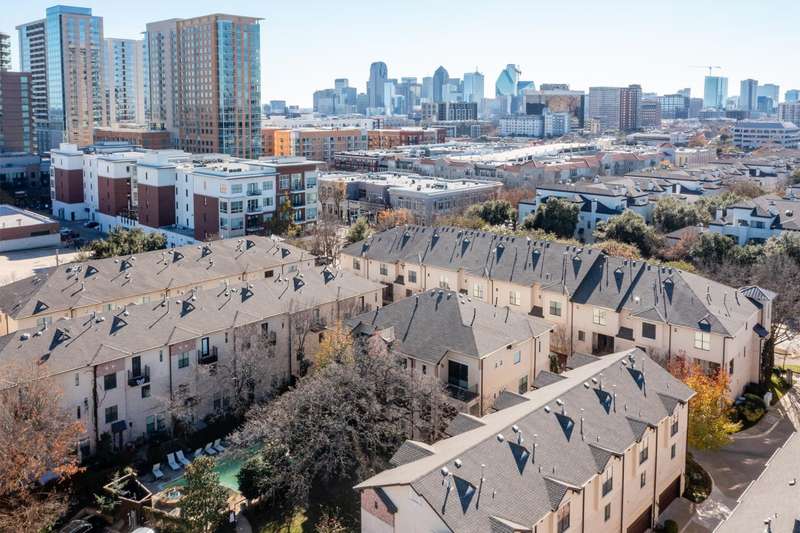MULTIPLE OFFERS RECIEVED. BEST & FINALS BY 12 NOON ON MONDAY NOV 3. Welcome home to this sophisticated Valencia townhome with gorgeous park views. Boasting an abundance of natural light, this home features beautiful crown moldings and hard wood floors throughout. The main living spaces with soaring ceilings create an airy atmosphere and offer generously sized living and dining areas ideal for both entertaining and everyday relaxation. The chefs kitchen is equipped with stainless steel appliances, a versatile island for meal prep or casual dining, ample cabinet storage, and sleek countertops that will delight any home cook. The primary suite offers a private retreat, complete with an ensuite bath featuring a soaking tub, walk-in shower, dual sinks, and a large walk-in closet. The additional bedroom is well-proportioned and can easily serve as guest room, office, or creative space to fit your lifestyle. Residents of the Valencia community enjoy a variety of amenities including a resort-style pool perfect for cooling off in the Texas heat, inviting courtyards for relaxing outdoors, a dedicated dog park for pet lovers, and convenient guest parking for visitors. Beyond the property, the location is truly unbeatablejust steps from the scenic Cole Park, Katy Trail for jogging and biking, and the vibrant shops and restaurants of West Village and Uptown. Enjoy easy access to McKinney Ave Trolley, Turtle Creeks picturesque green spaces, SMUs campus, Downtown Dallas, Love Field airport, the Medical District, and the creative energy of the Design District. This home offers the perfect blend of comfortable luxury, community amenities, and urban convenience in one of Dallas most sought-after neighborhoods.