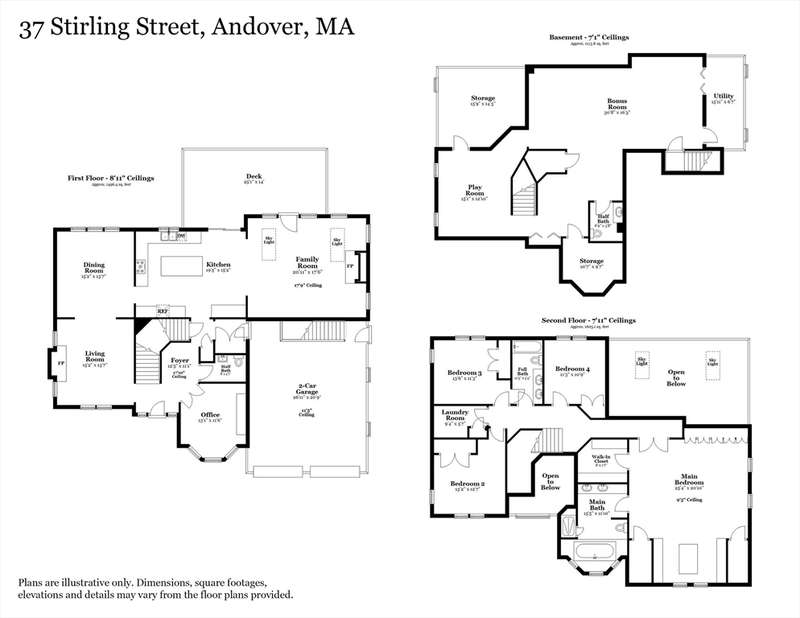 Welcome to 37 Stirling Street, a residence that embodies elegance, space, and distinction in one of Andover s most coveted enclaves. Set on a private lot amid stately homes, this 4,200+ sq ft Colonial blends timeless design with the modern lifestyle. Step inside to a dramatic two-story foyer that opens to a sun-splashed layout. The chef s kitchen, with custom cabinetry, premium appliances, and an expansive island, flows seamlessly into the fireplaced family room perfect for entertaining or relaxing evenings at home. Formal living and dining rooms, a private office, and a half bath complete the main level. Upstairs, retreat to the luxurious primary suite with spa-like bath and abundant California Closets. Three additional bedrooms and two full baths provide comfort for family and guests alike. The finished lower level offers flexible space for a media room, gym, or playroom. A 2-stall garage, deck, landscaped yard, plus nearby shops and scenic walking trails make this home truly special
