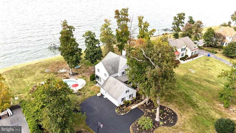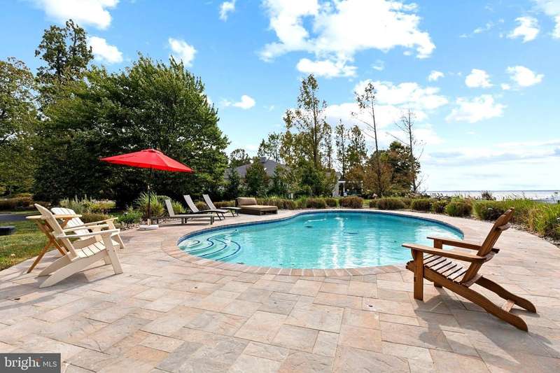 Welcome to your personal paradise nestled on the tranquil shores of the Chesapeake Bay. This stunning waterfront home boasts breathtaking western-facing views, allowing you to bask in the vibrant colors of sunset over the water each evening. Set on an expansive 1.53 acres of meticulously landscaped grounds, this property is located on one of Queen Anne's County's most exclusive streets, surrounded by nature's beauty and wildlife, including majestic bald eagles, playful dolphins, and the occasional deer wandering by. The home features an exquisite coastal design with open spaces and high ceilings, creating an airy atmosphere perfect for entertaining. Enjoy seamless transitions between indoor and outdoor living with ample entertaining areas that invite the beauty of the outdoors in. Dive into summer fun with your own heated waterfront pool, or take advantage of the private pier equipped with a boat lift and lower platform, making it easy to launch your kayak or paddleboard. Experience spectacular views of the iconic Bay Bridge and Bloody Point Lighthouse, with the western shore just a short boat ride away. Indulge in dining adventures at local eateries across the bay in Annapolis and West River or explore the charming destinations of Kent Narrows and St. Michaels to the east. For your everyday needs, a quaint country marina store is just around the corner, offering essentials for quick meals, as well as delicious takeout options, including steamed crabs and a selection of seafood, beer, and wine. This property is the epitome of Eastern Shore waterfront living, where luxury meets nature, and every day feels like a vacation. Come and discover the ultimate retreat that awaits you on the Chesapeake Bay!