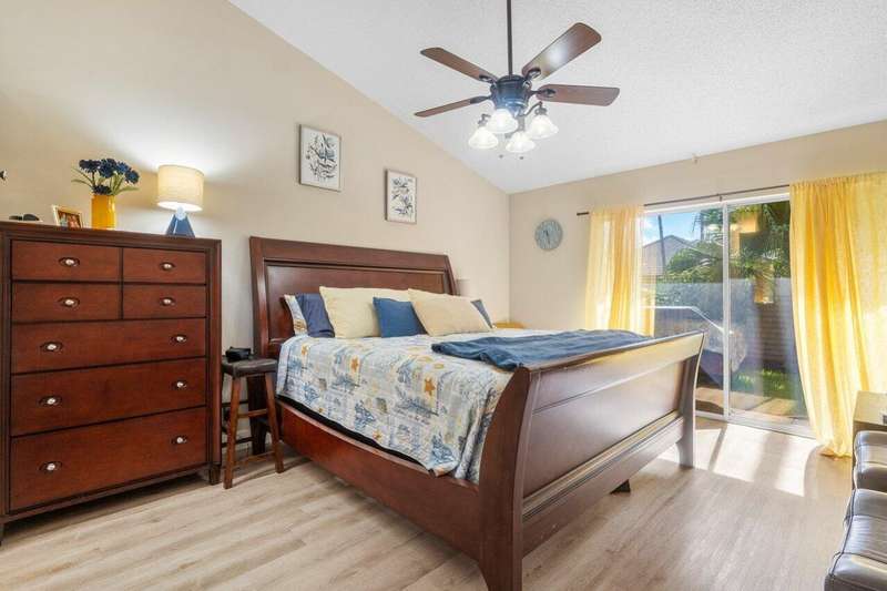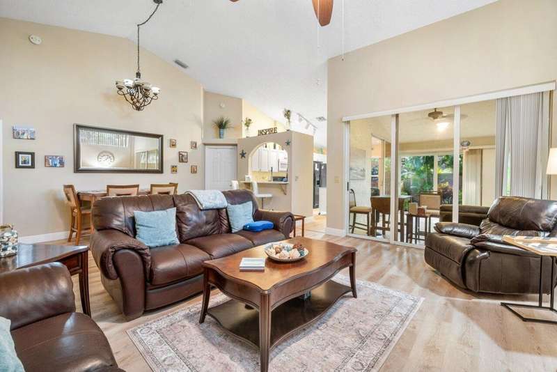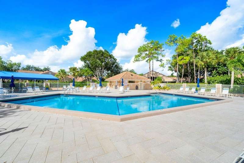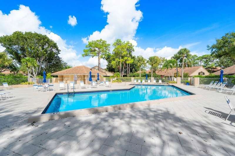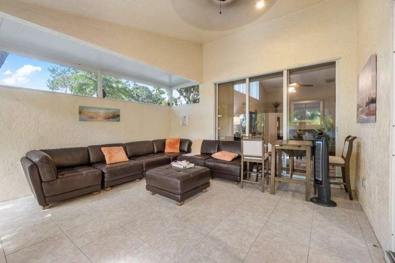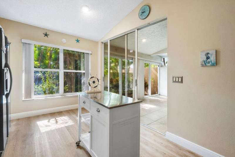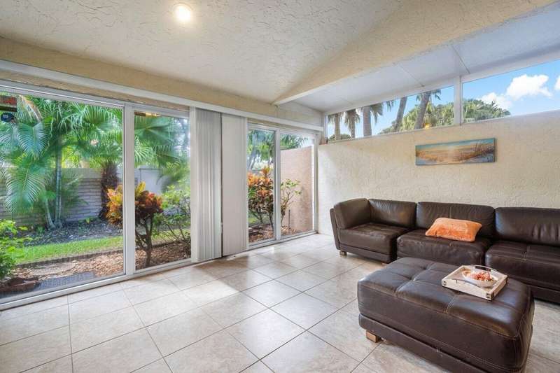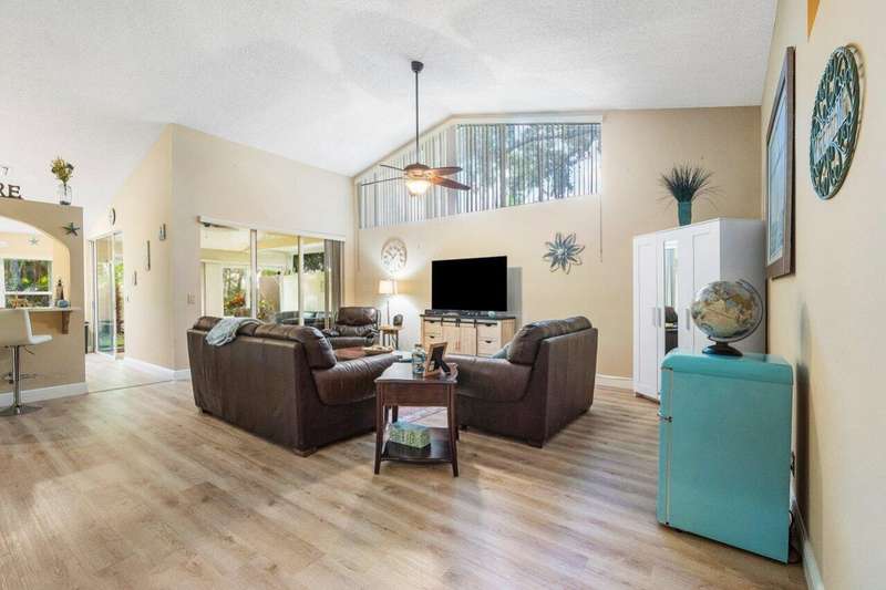Located right across from the huge newly renovated and heated community poolAvail for 2026 Season Starting Jan 15th to April 15th in the highly desirable golf community of PGA National! This is one of the nicest homes in Heather Run, and has everything you could want! Beautifully decorated & updated single-story end unit with an open floor plan and soaring ceilings! Kitchen was recently renovated as well as vinyl wood flooring throughout. Split floor plan for privacy, Two gorgeous baths, granite countertops, newer washer/dryer, new tankless water heater, over sized enclosed covered patio for an extra 300 sq/ft of living space, and much more! 3rd bedroom is being used as a home office with high-speed internet and printer. Perfect winter retreat