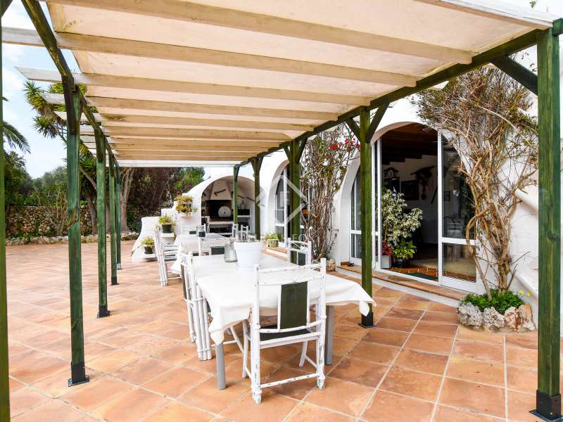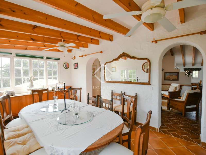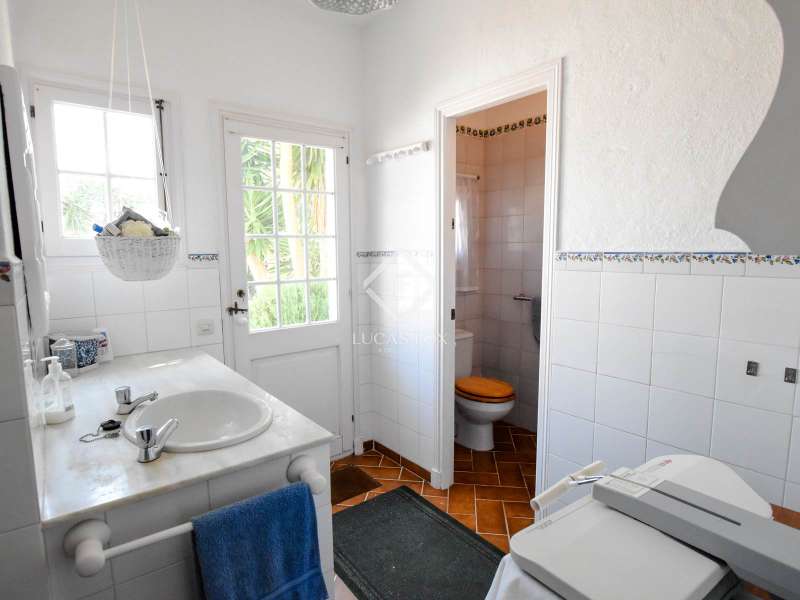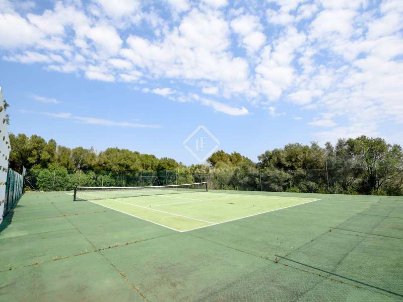 This fantastic property, comprised of a main house and several annexes, is set on a plot of 36,000 m² in Es Castell. The main house has a total built area of 626 m², distributed over two floors. On the ground floor we find the entrance hall, the kitchen, the living room with a bar area and the access to the barbecue zone, a living-dining room with a fireplace, 5 bedrooms (2 of which have en-suite bathrooms) and 7 bathrooms in total. The first floor consists of a kitchen, a living room with a fireplace, a double bedroom with en-suite bathroom and a terrace with access to the garden. Facilities are of the highest quality, among them gasoil radiators, ceiling fans and air conditioning with splits. There are also ceilings with exposed wooden beams. The house also has several terraces, porches, a barbecue area, swimming pool, petanque area, tennis court and bathroom with sauna and jacuzzi in the garden. The estate originally had 2 barns of 116 m 2, which have been converted into 3 bedrooms, 2 bathrooms, a kitchen and an outside porch with kitchen. In another annexe building we find a double bedroom and a bathroom with access to the porch. An ideal opportunity for those seeking a very spacious family home in an excellent location. The information described here is merely informative and is assumed to be accurate, however, the above data may be subject to errors, price changes or changes in conditions without prior notice.