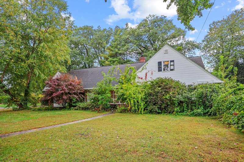 UNBELIEVABLE OPPORTUNITY to own this brick cape that lives like an EXECUTIVE RANCH on main level w/FLOW & FUNCTION in coveted Blueberry Hill district. Home s footprint is ample, POTENTIAL endless & FIRST TIME being offered to marketplace on a great street with a tremendous range of property values. Fantastic & generous main level showcases hardwoods under most carpeting including the open living/dining room w/stacked stone fireplace opening to four season sunroom beyond w/half-vaulted ceiling, tile floors, skylights & walls of glass. Cozy den features bow window & custom built-in bookcase/dry bar. Kitchen has ample space w/white wood cabinetry, center island & eating area. Mudroom houses laundry & hall closet. Bedroom wing has large primary suite w/wall of closets, 2 more bedrooms w/double closet & tiled full bath. Upper-level offers flexibility in uses w/loads of storage, 4th bedroom w/hardwoods, home office & third full bath. CLASSIC home that will SHINE with your COSMETIC TOUCHES.