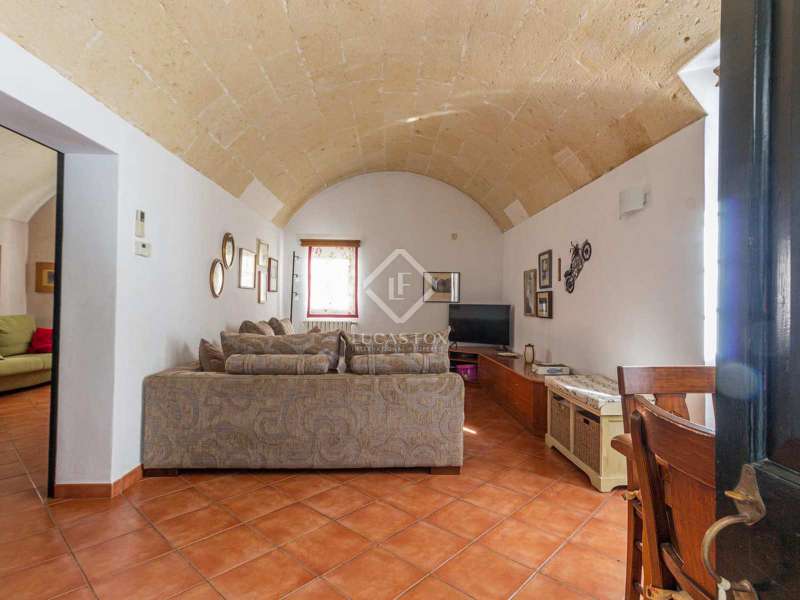 Mill from 1860 converted into a 273 m² property on a 640 m² plot in the urban center of Ciutadella de Menorca and a few meters from the centre. Formerly it was a flour mill whose design has been maintained, as well as its original structure. The property , all distributed on the ground floor of 246 m², consists of five bedrooms, a bathroom, spacious living rooms with sandstone vaults that surround the access to the mill in perfect condition. It also has a living-dining room, a typical Menorcan kitchen, a beautiful terrace and a utility room area. It has hot-cold splits distributed in several rooms of the property and centralized oil heating. It also has a large garage with capacity for more than two vehicles. Outside it has an access patio, a garden area and another for cultivation. The property has a 40-ton well. The house in perfect condition can be reformed, although in 2002 a renovation was made in half of the property. It is a protected house, so the façade and the mill must be preserved. A unique property to live all year or spend seasons with family and/or friends. Contact us for more information, or to arrange a visit.