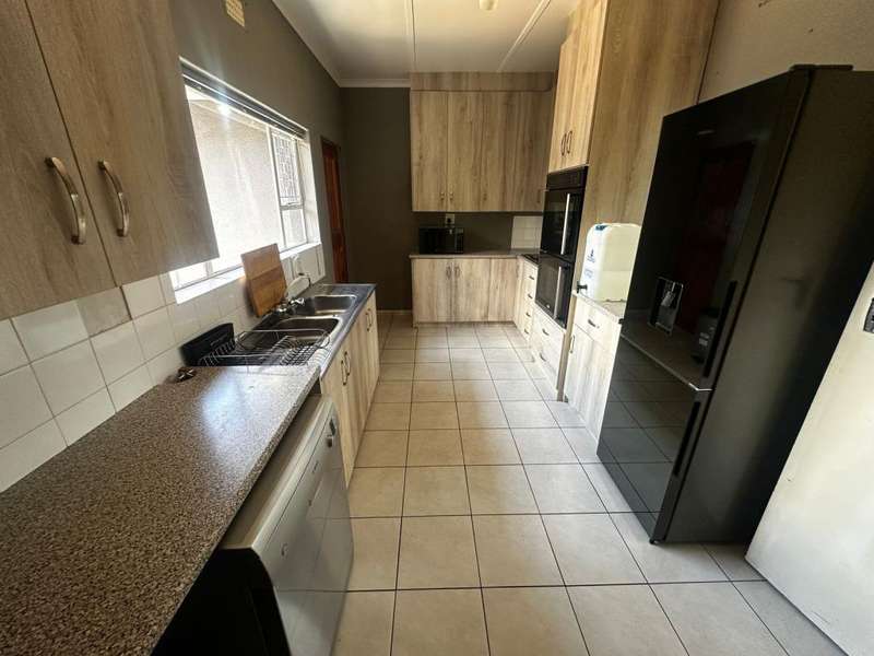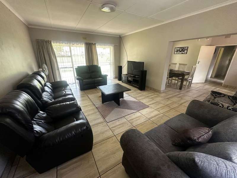 FAMILY VALUE This Property offers ?Çó 4 Bedrooms ?Çó 2 Bathrooms ?Çó Modern kitchen with lots of built-in cupboards, an eye-level oven, hob, and a pantry, ?Çó Open plan Lounge and Dining ?Çó Covered Patio with a built-in braai overlooking the Sparkling pool ?Çó Double Garage ?Çó Double and Single Carport ?Çó Servants quarters The property fully fenced and secured with burglar bars and an alarm system Call us to view this Property