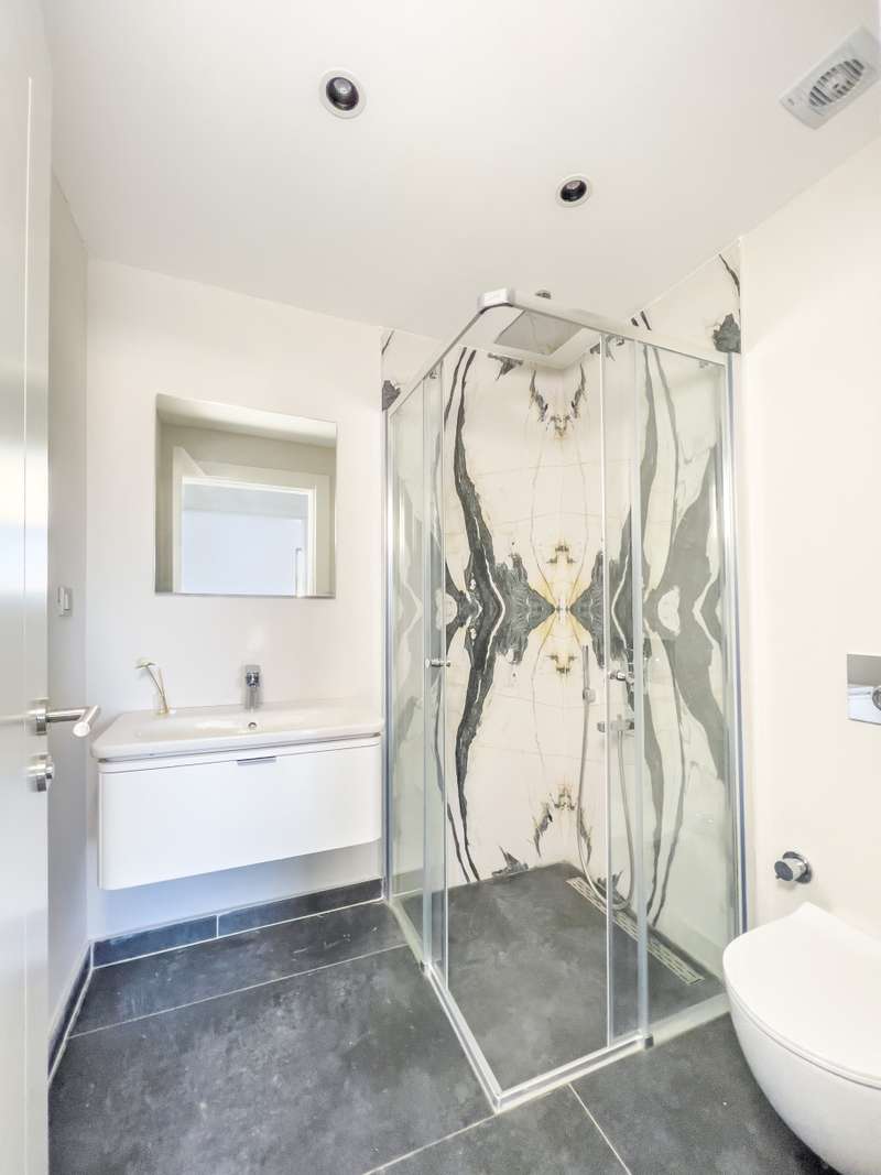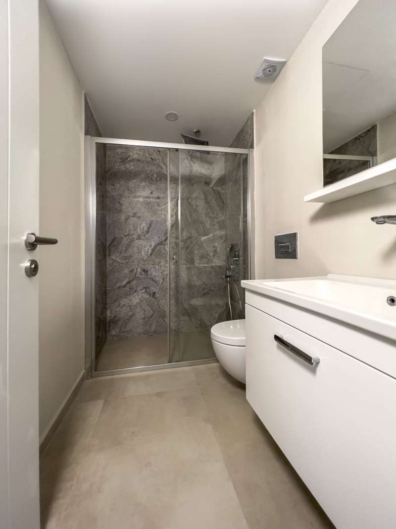 The flats for sale in Bodrum are situated in a complex consisting of 40 units in total. The complex has 4500 sqm of total land area, including 1000 sqm of communal area. The communal areas are landscaped with greenery. In the complex, there is a reception, 24/7 security, an outdoor communal infinity pool, kids' playgrounds, and a hiking path.
