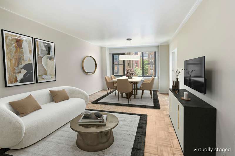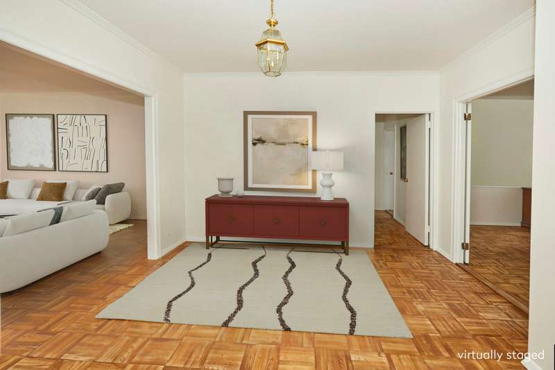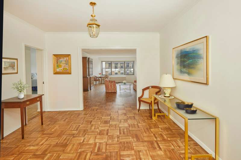 This rarely available C line classic 7 room home at 60 East End Avenue has just come to market! This spacious and sunny coop faces North, South and West; the major rooms face South and are bathed in sunlight. The classic layout is highly flexible. The entry foyer has a large coat closet and powder room, leading to a central gallery. To the left is the gracious living room, and to the right is a multipurpose room, currently a formal dining room, which can also be used as a media room or dining/den. The span of these rooms is 60 feet, creating a great flow for living and entertaining. Off the living room is a large bedroom with oversize windows and Southern exposure, as well as walk-in closet and ensuite bath. The location makes it a perfect den or library, and it is often used this way.