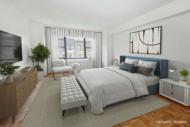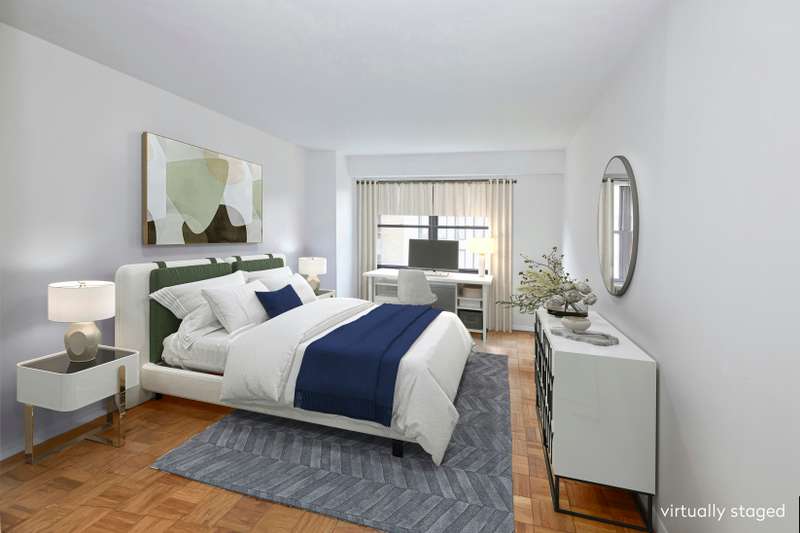 Off the gallery there is a hallway with a double linen closet that leads on the left to the spacious South facing Primary Bedroom with 2 large walk-in closets and windowed Master Bath. ; Across the hall is a large bedroom with open views and ensuite bath. All the windows in the apartment are oversized and have been upgraded. There are individually controlled HVAC units in every room. Parquet floors in excellent condition run throughout.