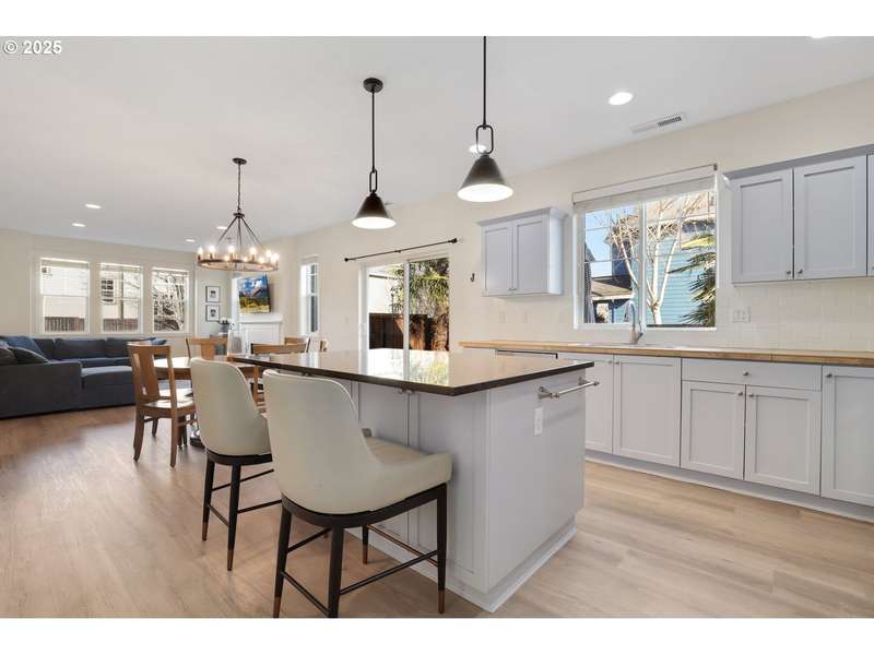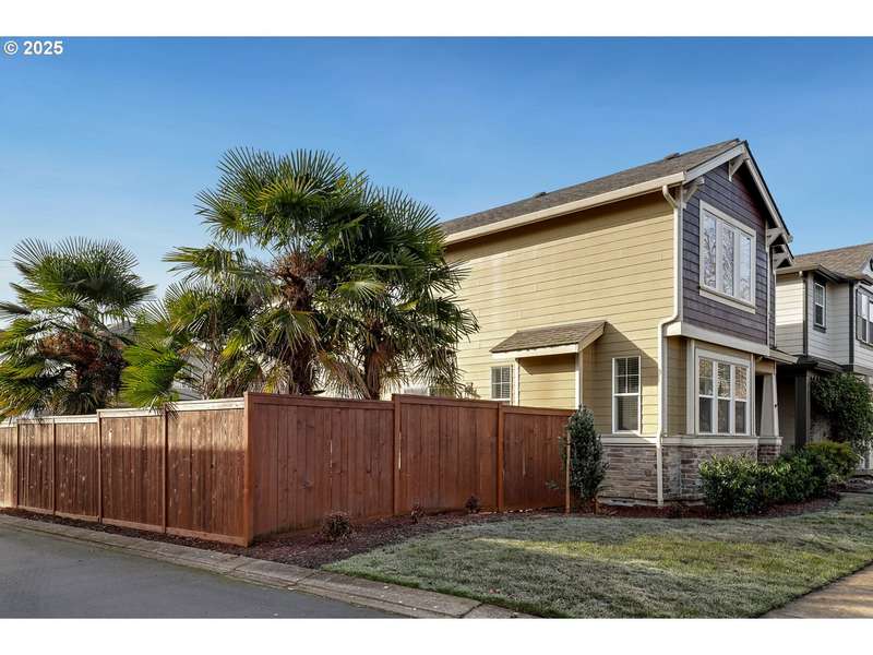 OPEN HOUSE Sunday 26th, 12-2. Updated 4-bedroom, 2.5-bath home in the quiet Edgewater community offers the perfect blend of comfort and style. Situated on a corner lot with an oversized side yard, the home features a spacious great room with a cozy gas fireplace, an updated island kitchen with an eating bar, pantry, and modern finishes throughout. The primary suite impresses with vaulted ceilings, a walk-in closet, and the primary suite comes complete with a soaking tub, walk-in shower, and dual sinks. The third bedroom includes a custom Murphy bed with built-in storage, offering added versatility. Step outside through sliding glass doors to a low-maintenance side yard with a patio and four striking palm trees—ideal for entertaining or relaxing in your own private oasis. An oversized two-car garage provides ample storage. Enjoy close proximity to the Tualatin River National Wildlife Refuge, parks, trails, bike paths, and a public golf course, with quick access to freeways, shopping, dining, and more.