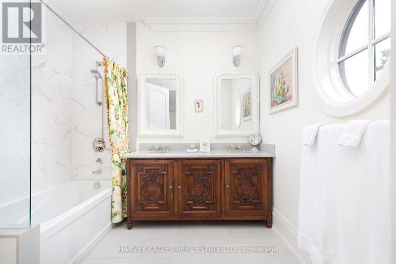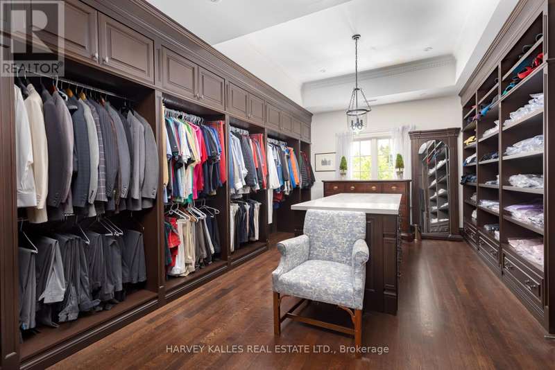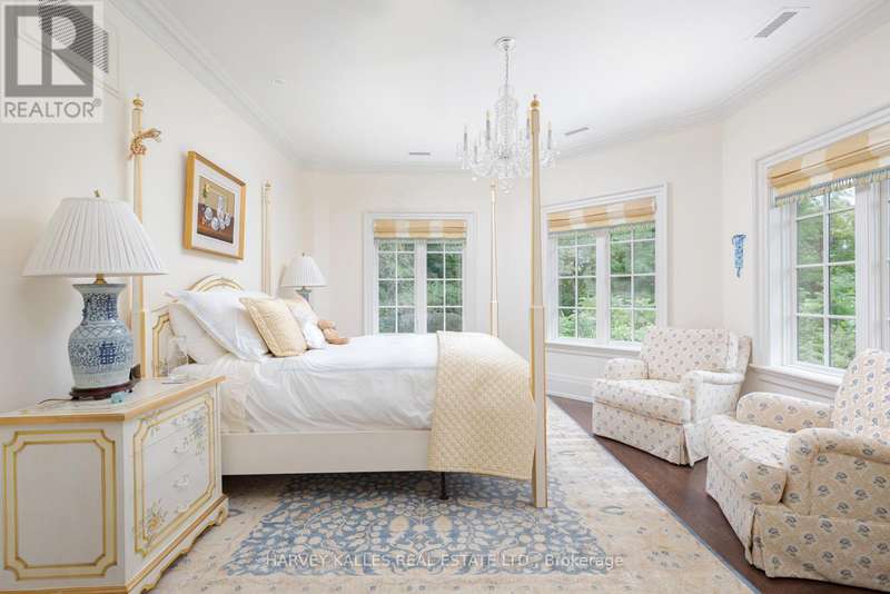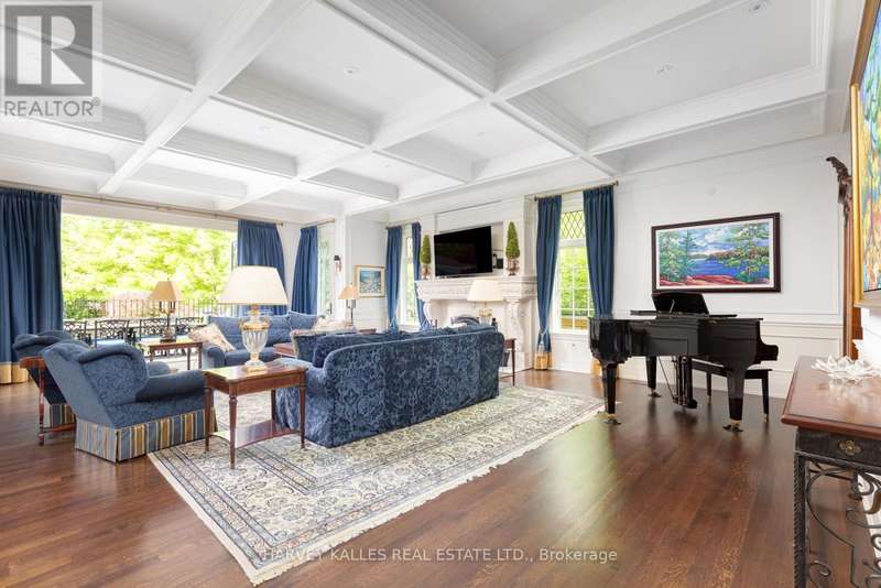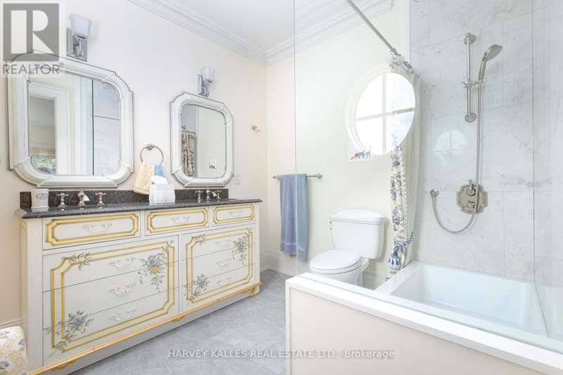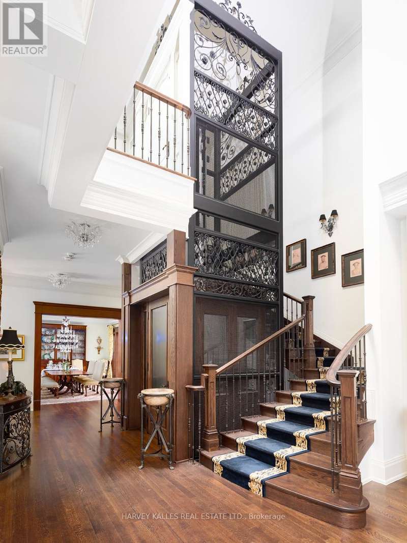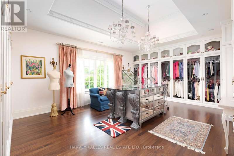 From vision to fruition, 8 Swansdown Drive stands as a truly unique and masterfully built residence. Every element was carefully chosen with intention, resulting in a home that exudes sophistication, comfort, and timeless beauty.Set on a secluded, lush lot in one of Torontos most prestigious neighbourhoods, the property offers unmatched privacy. A grand circular heated driveway welcomes you and your guests with ease, while a three-car garage securely houses your most prized possessions. The striking freestanding waterfall and manicured gardens create an instant sense of calm and retreat from the city.Inside, the double solid-oak doors open to a breathtaking two-storey foyer with soaring ceilings and open sightlines to the stunning rear gardens. The elegant living room features a wood-burning fireplace and retractable Floridian-style glass doors that open to a stone patio for al fresco dining. The sun-drenched kitchen and breakfast room overlook the lush grounds, while the formal dining room connects via a butlers pantry.The garden solarium is perfect for nurturing plants year-round. Additional main floor highlights include a cheerful office, art studio with water access, and a one-of-a-kind octagonal library with handcrafted detailing, a ceiling medallion, and hidden staircase.The second floor is accessed by a sweeping staircase or a wrought-iron Parisian-style elevator. A skylit hallway leads to four generous bedrooms, each with its own ensuite. A separate two-piece bath, laundry room, and pet spa complete this level.The lower level offers an impressive array of spaces: gym, yoga room, sauna, rec room, large storage, study, soundproof music room, guest suite, and more.Outdoors, enjoy over a million dollars in landscaping, a chlorine pool, fire pit, two covered pavilions (one with bar and bath), and stone pathways weaving through a magical setting.A rare offering. Welcome home. (id:6370)