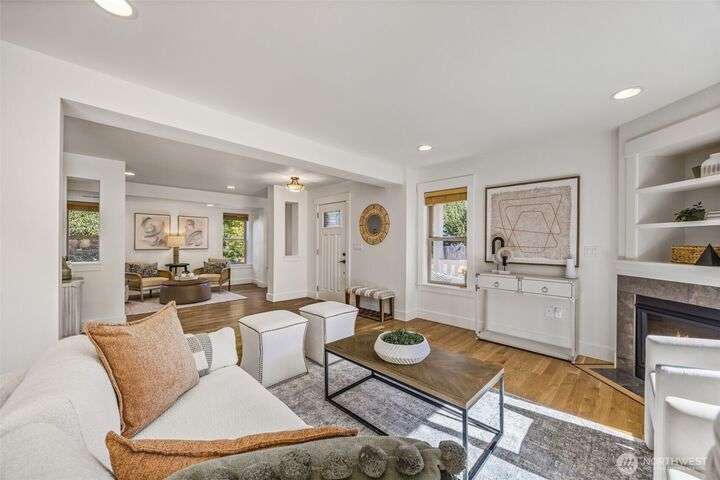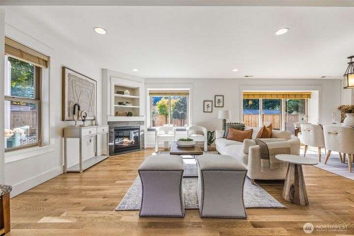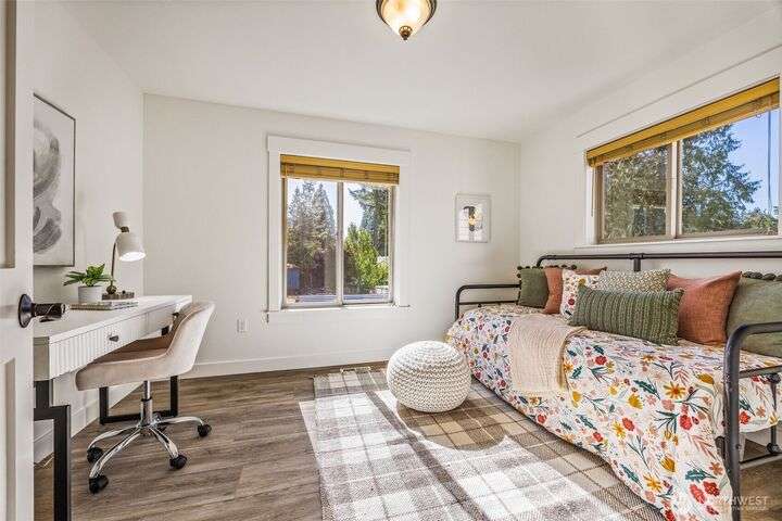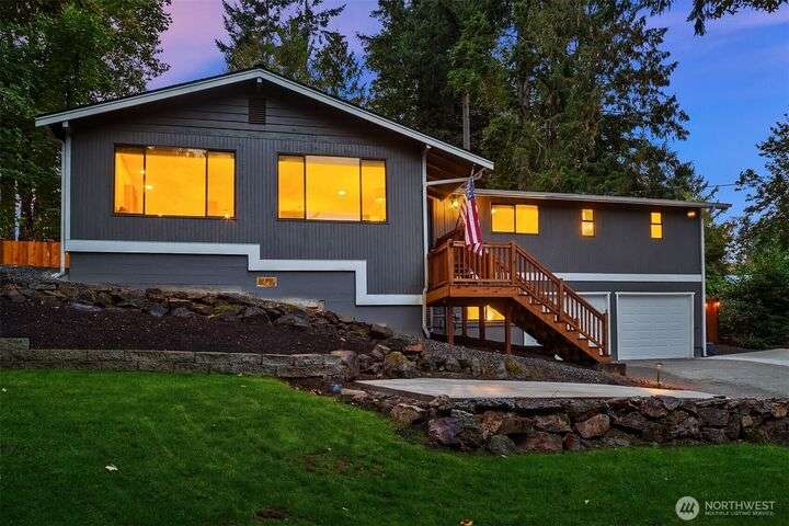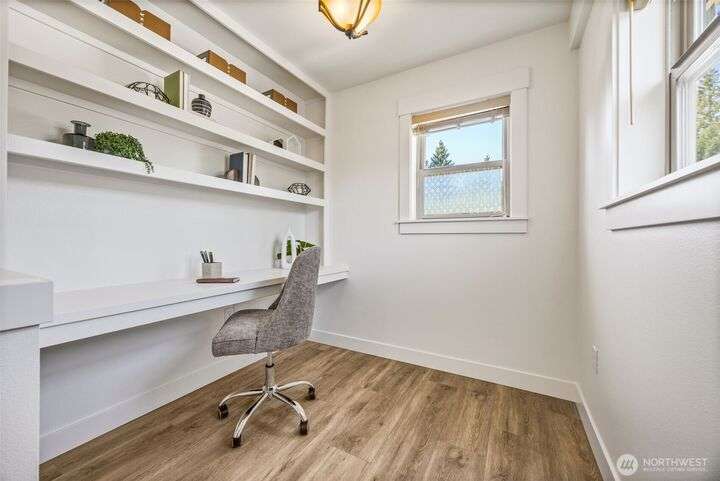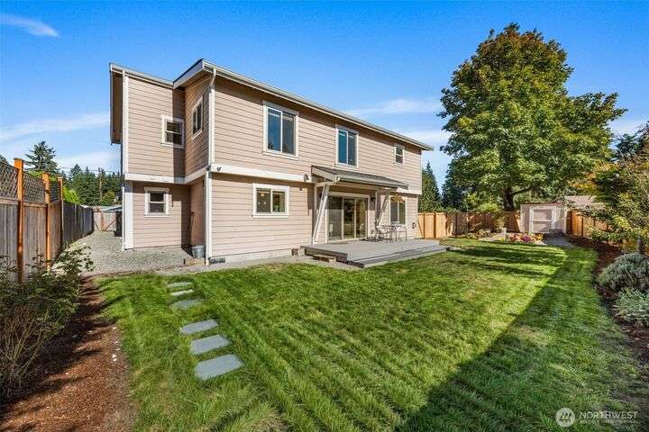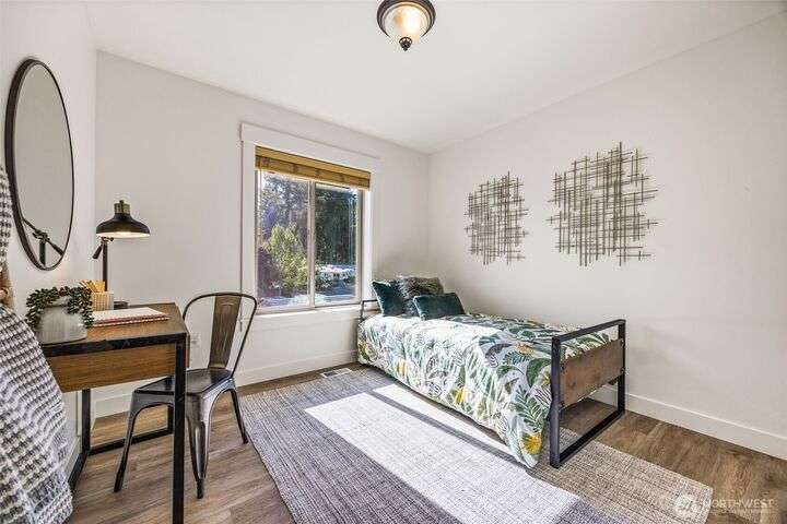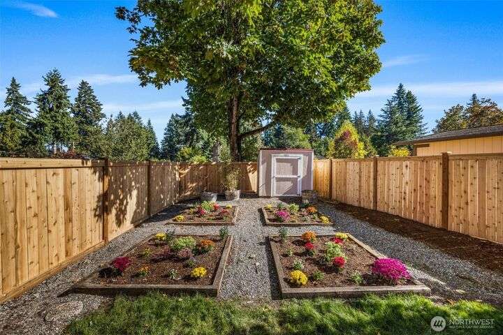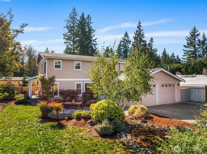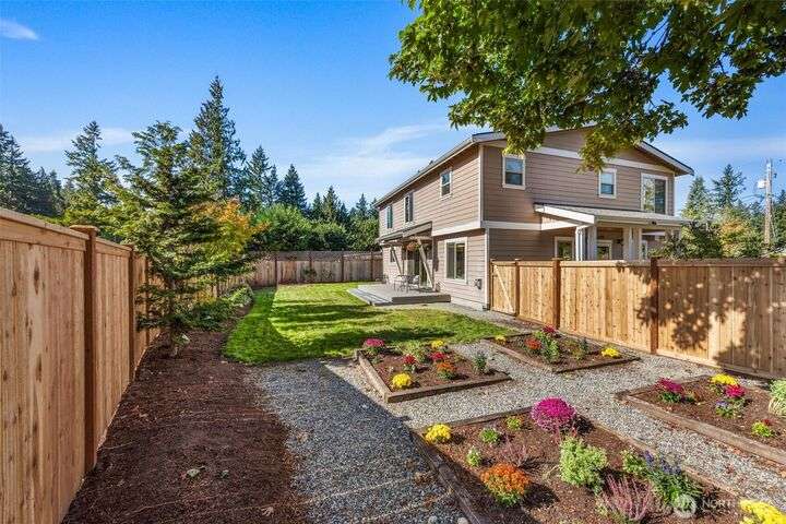 Welcome to your updated corner-lot home! Fully remodeled in 2012, natural light fills the open-concept main floor and brightens each bedroom, creating a warm and welcoming atmosphere. On chilly PNW evenings, cozy up by the fireplace or gather with friends around the table. A main-floor bedroom with nearby full bath offers flexibility for guests or a private office. Upstairs, a bonus space and built-in desk nook provide the perfect spot for work or crafts. Fresh interior paint enhances the home’s airy feel. Enjoy sunny days in your fully fenced yard—planting in the garden boxes, relaxing on the deck, or picking fruit from your own trees. With its thoughtful spaces indoors and outdoors, this home is ready to welcome your next chapter.