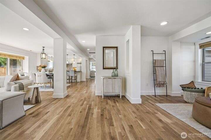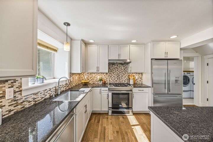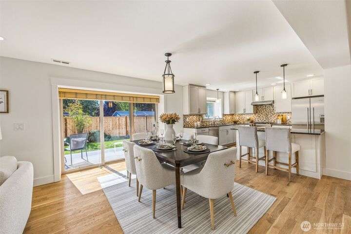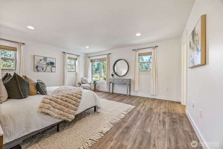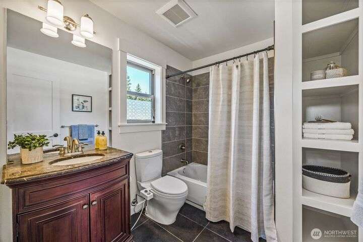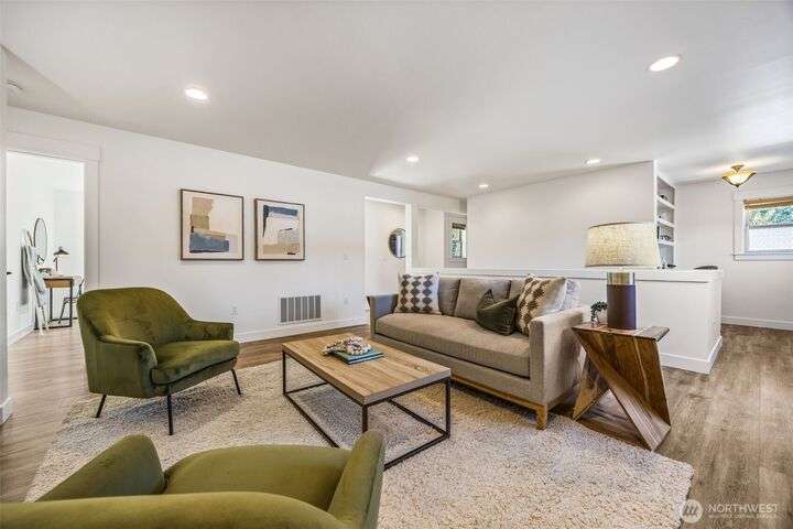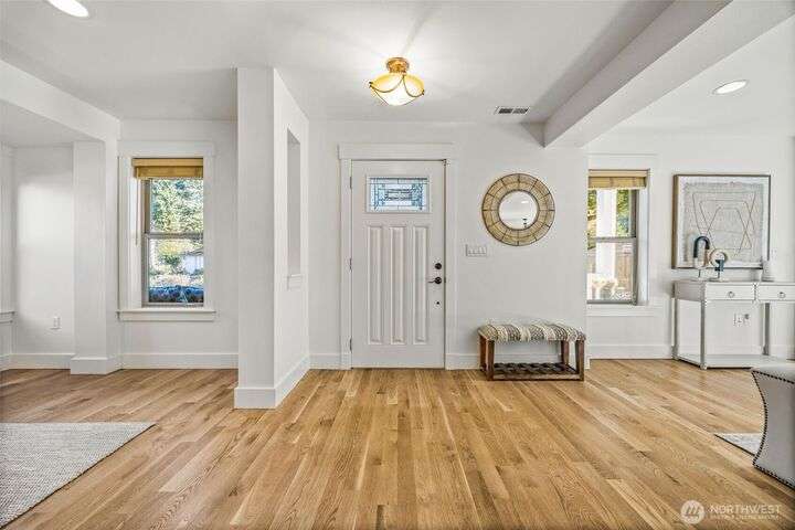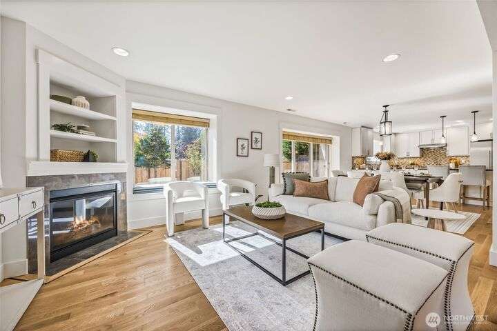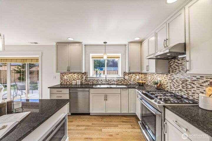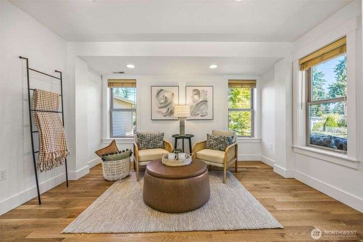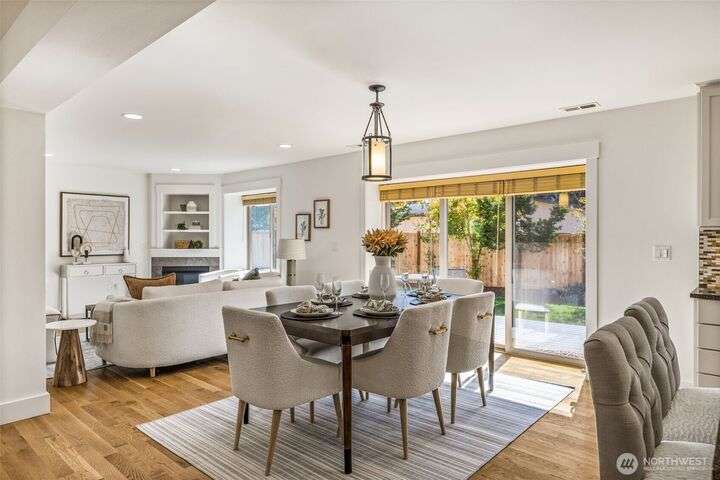 Welcome to your updated corner-lot home! Fully remodeled in 2012, natural light fills the open-concept main floor and brightens each bedroom, creating a warm and welcoming atmosphere. On chilly PNW evenings, cozy up by the fireplace or gather with friends around the table. A main-floor bedroom with nearby full bath offers flexibility for guests or a private office. Upstairs, a bonus space and built-in desk nook provide the perfect spot for work or crafts. Fresh interior paint enhances the home’s airy feel. Enjoy sunny days in your fully fenced yard—planting in the garden boxes, relaxing on the deck, or picking fruit from your own trees. With its thoughtful spaces indoors and outdoors, this home is ready to welcome your next chapter.