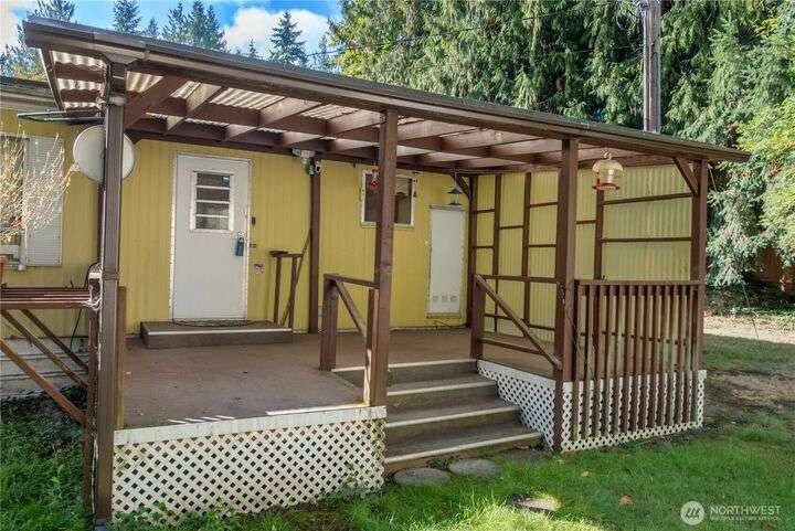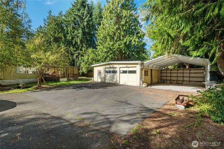 Welcome to your peaceful retreat in Clover Creek! This 2-bed, 2-bath home sits on a private 0.51-acre lot, offering 1,152 sq. ft. of comfortable living space. Bright interiors and a functional layout provide plenty of potential to make it your own. Enjoy a large 780 sqft detached garage with attached shop, ample parking, and a spacious yard perfect for gardening, play, or future projects. Nestled in a quiet setting yet close to schools, shopping, and major routes, this home combines privacy with convenience. Don’t miss your chance to own this slice of Clover Creek tranquility!