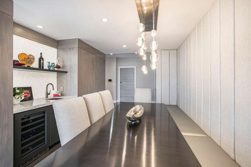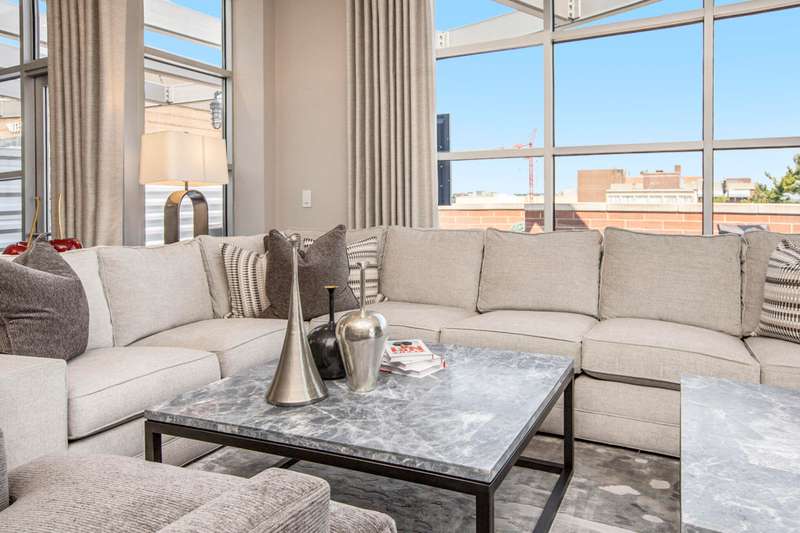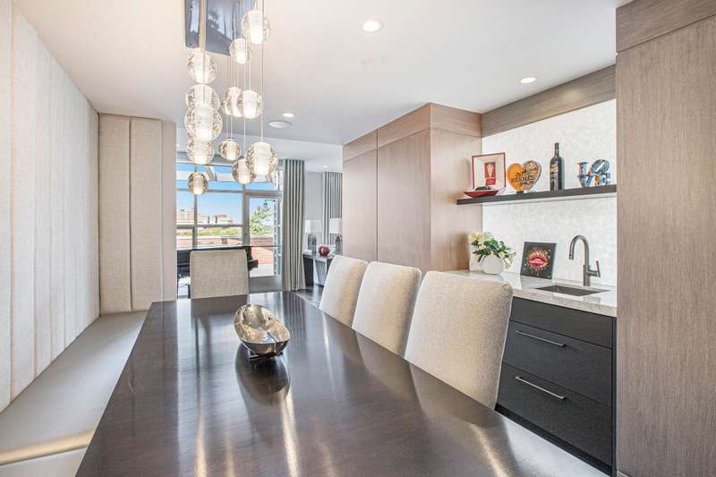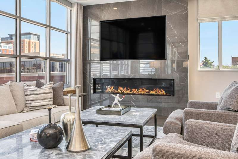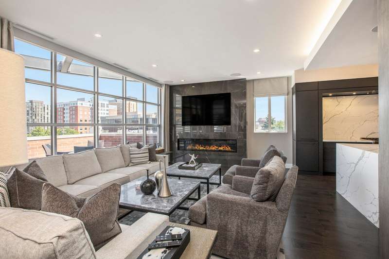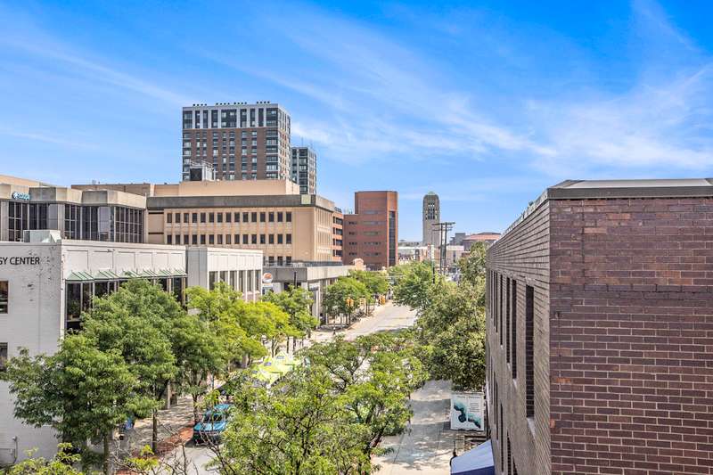 One-of-a-kind luxury living in the heart of downtown Ann Arbor! This extraordinary 2-story, 2-bedroom, 2.1-bath penthouse residence in the coveted Loft 322 building has been completely transformed - custom-designed from top to bottom with premium finishes and meticulous attention to detail. Two expansive balconies showcase sweeping north and east views, including the Michigan Theater, State Theatre, and the University of Michigan campus. Inside, every element has been thoughtfully curated for style, sophistication, comfort, and convenience. Smart home technology allows effortless control of lighting, temperature, window treatments, whole-house sound, and more at the touch of a screen. The upper level features a spacious dining room with built-in banquette seating and a wet bar with beverage cooler. A light-filled music/sitting room with balcony access flows into the inviting living room with an electric fireplace bordered by an entire wall of windows. The chef's kitchen is a showstopper - custom cabinetry, quartz countertops, premium Thermador appliances, and a waterfall island with generous storage and breakfast bar seating. A discreet powder room completes the level. A dramatic lighted staircase leads to the private bedroom level, which also has its own building entry. The luxurious primary suite offers an electric fireplace, wet bar with built-in Thermador espresso machine, private balcony, spa-worthy bath with dual vanity and rain shower, and a professionally designed walk-in closet. The second bedroom includes a custom wall of storage and easy access to a full hallway bath. A laundry/utility room adds convenience to this level. Additional highlights include wood floors, neutral decor, abundant storage, and two assigned parking spaces in the heated garage. Building amenities feature secure entry, a fitness center, and a private storage locker. All this, just steps from Ann Arbor's best restaurants, shopping, and the University of Michigan campus. Peerless in design, location, and lifestyle. Don't miss this incredible opportunity!