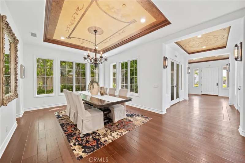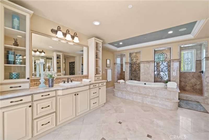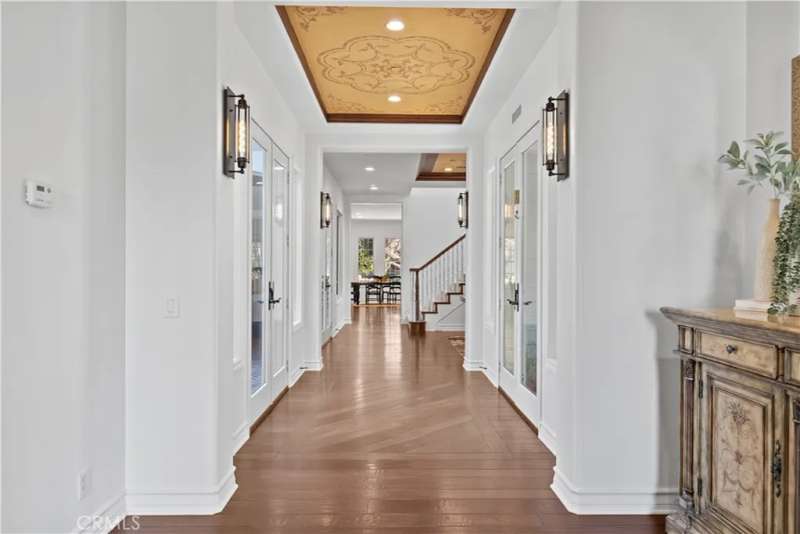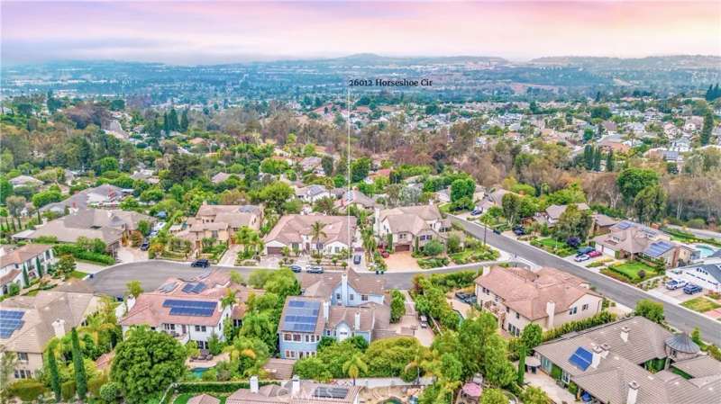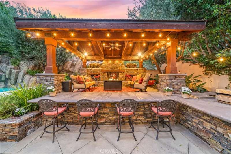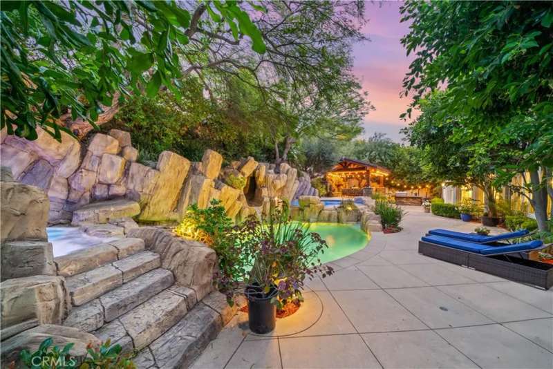 Nestled within the prestigious equestrian community of Nellie Gail Ranch, this meticulously upgraded residence is situated at the heart of a quiet, tranquil, pride of ownership interior cul-de-sac. Spanning nearly 6,000 square feet, this luxury estate offers five bedrooms, five & one-half baths, a dedicated bonus room, billiard parlor, an office with a built-in Murphy bed for guests, & an upper library, providing an exceptional breadth of living spaces for distinguished residents & their guests. The already expansive interior is complemented by a magnificent exterior designed for opulent entertaining & recreation which includes over $15,000 of specimen orange, lemon, lime, avocado, fig, apple trees & grape vines. A private lanai, adorned with sophisticated stone accents & a charming fireplace, sets the stage for al fresco dining & relaxed evenings. Beyond the lanai, a resort-style rock pool captivates with cascading waterfalls, a thrilling 35-foot slide, & a walk-in kiddie pool, ensuring endless hours of enjoyment. French doors invite a seamless transition to private interior courtyards with a koi pond creating an elegant flow ideal for both intimate gatherings & grand celebrations. Have an intimate dinner in the outdoor covered atrium in front of a cozy fireplace, the billiard parlor provides a setting for engaging games, while the upper bonus room offers a secluded space for cinematic indulgence. Culinary artistry flourishes in the gourmet kitchen, equipped with a custom mastery stove hood, a spacious seating island, Sub-Zero refrigerator & freezer, Wolf appliances, 2 dis