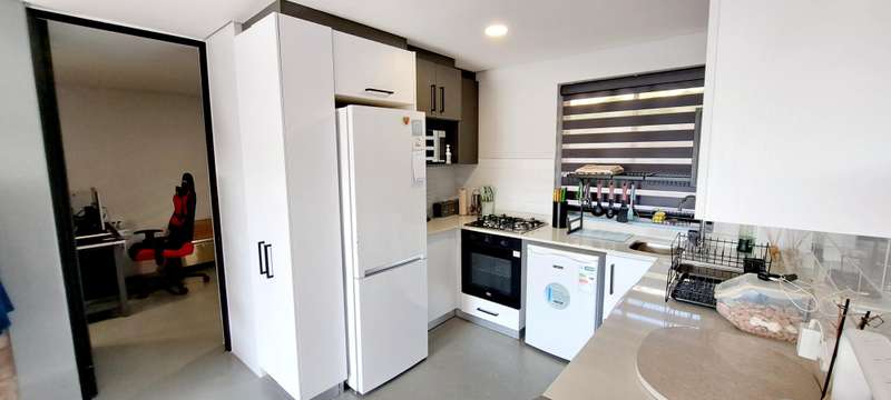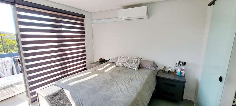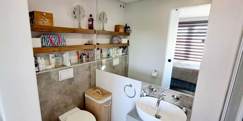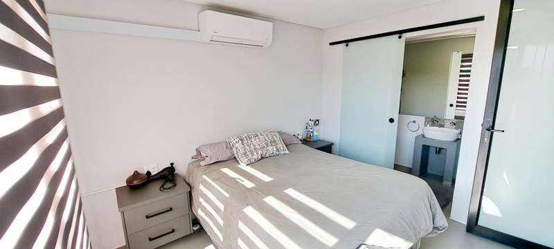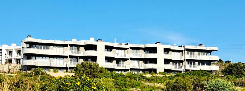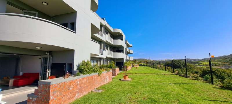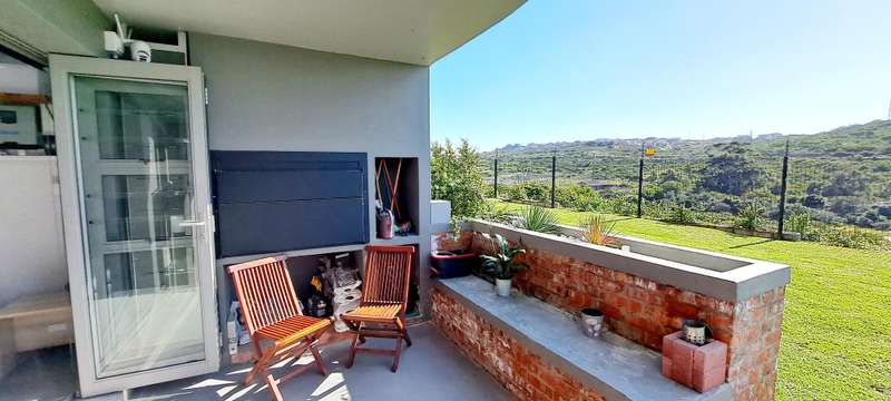 Very modern, north facing ground floor unit in this newly build complex with breathtaking views of the Outeniqua mountains and the ocean. Enjoy the sunsets from patio, while having a braai with friend overlooking this beautiful part of the Garden Route. This apartment is located very close to all the amenities in Hartenbos, the Langeberg Mall, Mosselbay, and direct access on the N2 to George and the airport. This unit offers 2 bedrooms, both with en-suite bathrooms, modern kitchen, and lovely open plan living area, leading onto the patio with covered braai and then to the shared lawn and garden. This is also a pet friendly complex, and a clear view electric fence that surrounds the whole complex for your safety. There is also solar geyser and intercom system for your convenience, as well as a camera and monitors on the front stoep area. There is also washing lines on the rooftops for the occupants and this unit also have a automated single garage. This can be your little gem in the Garden Route. Call me for more information.