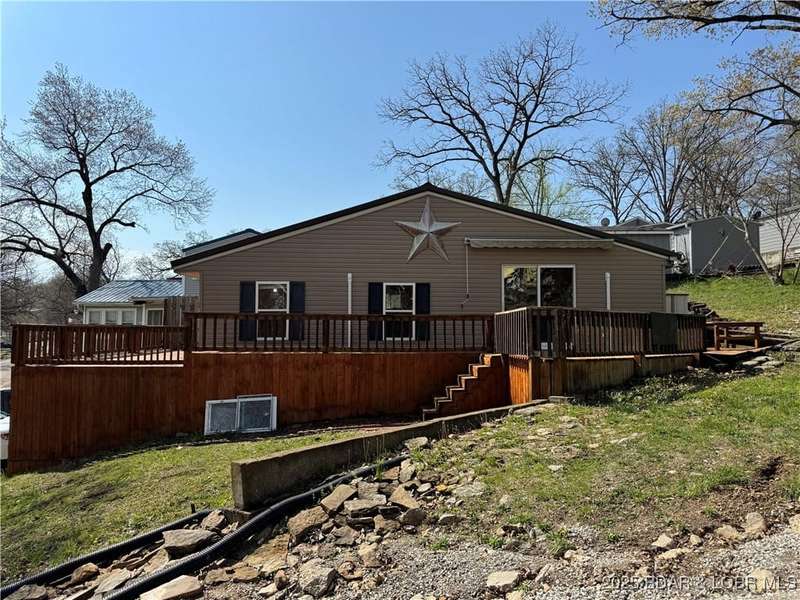 Lake of the Ozarks Getaway! Newly remodeled this year, this cabin has all new flooring, paint, and mini split system. This home comes with a dock right across the street on the Lake of the Ozarks. A large wraparound porch gives you amazing views of the lake and is the perfect spot to host guests. Call today!