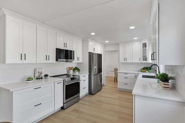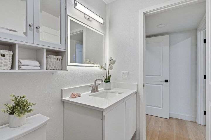 Fall in love the minute you walk inside this Blossom Valley Beauty! It features one of the best floor plans with a bright open-concept layout, that fills the home with natural light. The spacious living and dining areas flow seamlessly into the updated kitchen and family room, perfect for entertaining. It also offers a convenient downstairs bedroom ideal for guests, in-laws, or a home office. Enjoy new vinyl plank flooring, double-pane windows, fresh interior and exterior paint, and stylish finishes throughout. The chefs kitchen showcases white shaker cabinets, quartz counters with soft gray veining, and sleek black fixtures and lighting. From the kitchen and family room, take in views of the expansive 7,916 sq ft ideal for a backyard oasis or future ADU. Upstairs bedrooms are spacious, some with walk-in closets and beautiful neighborhood views. Bathrooms have been updated with modern touches. Also, includes a large laundry room, three-car garage, new landscaping, tankless water heater, and fire-resistant upgrades including (Sidco) panels and amber vents. Near Martial Cottle Park, VCHS Private, shopping, schools, and HWY 101/85/87. Perfect for move-up buyers seeking space, style, and a large lot with rooms to grow, move right in and experience Blossom Valley living at its best!