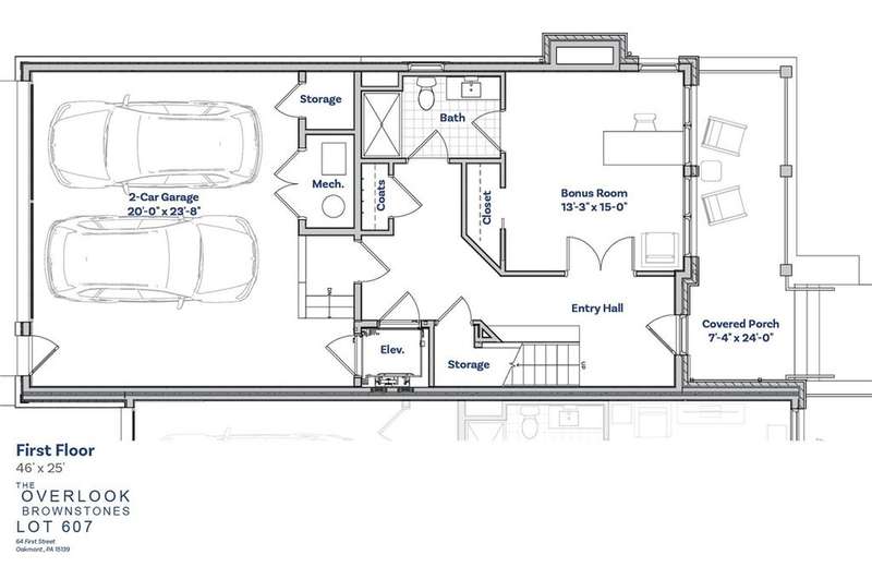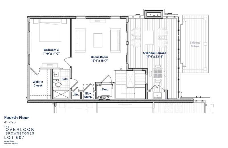 Welcome to the Overlook Brownstones, modern city-style vertical residences within The River's Edge of Oakmont community. This brand-new residence stands tall along the Allegheny River with water views from the multi-level balconies and large top-level terrace with fireplace. As a corner unit, many tall windows make it bright and airy. Interior features include an in-home elevator, open floorplan with 10-ft ceilings on main level, 3?4-bedroom suites and bonus room. Finished to drywall stage > buyers can make interior selections and customize to their liking. The riverfront clubhouse for residents includes a fitness center, infinity pool, great room/party room, and fire-pit. Low-maintenance community ?no more cutting your grass! Paved walking trail along the water. Close to the shop and restaurants of the Oakmont business district. 30 minutes or less to Downtown, Oakland or Bakery Square.