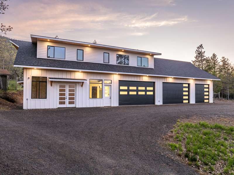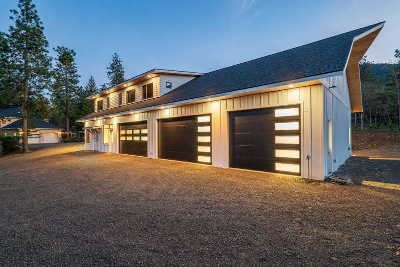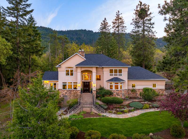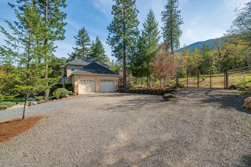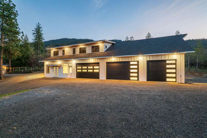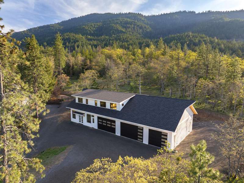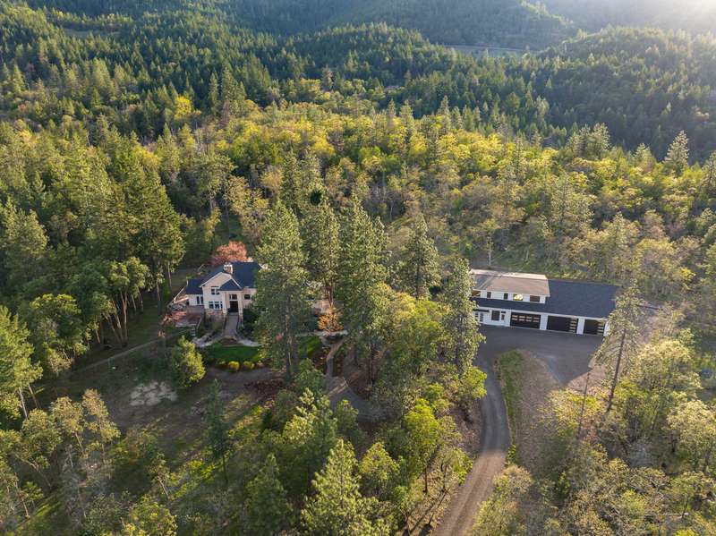 Just a short drive south of Ashland, Oregon, lies this private 22-acre retreat. This private estate features a custom home, a recently built 5,000+ sq ft shop with striking modern design, plus sweeping views of the mountains. Inside, the home welcomes you with a bright entry foyer, cathedral ceilings, and a Tulikivi soapstone stove. The modern kitchen is equipped with high-end appliances and flows seamlessly into the dining room and living area. The main level also includes a spacious guest bedroom, full bath, walk-in pantry, and utility room w/half bath. Upstairs, the primary suite offers a walk-in closet and luxurious private bath, accompanied by two additional bedrooms, a guest bath, and a 2nd laundry room. The shop includes flexible space for vehicles, hobbies, a gym, or workshop. Outdoors, enjoy 900 feet of Slide Creek, hike through the well-maintained forest, or unwind in the hot tub. This is a rare blend of seclusion, usable land, recreation, and convenience.