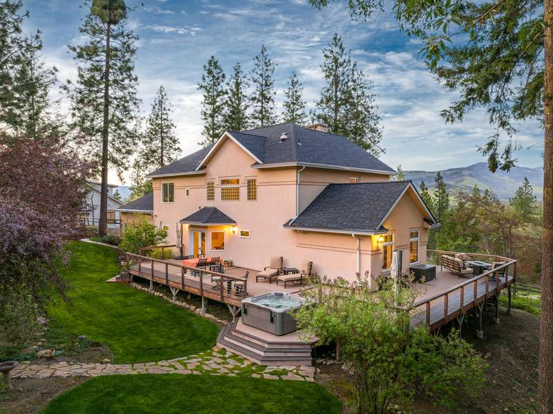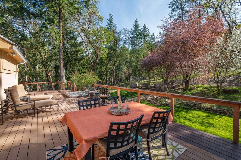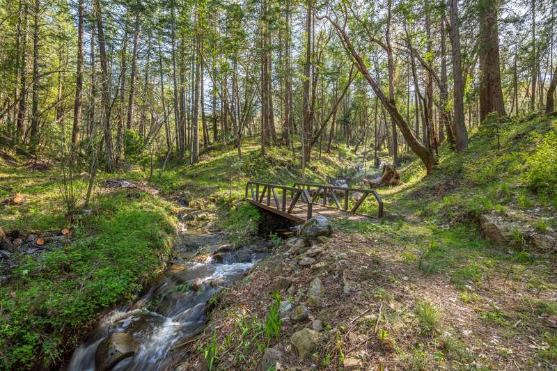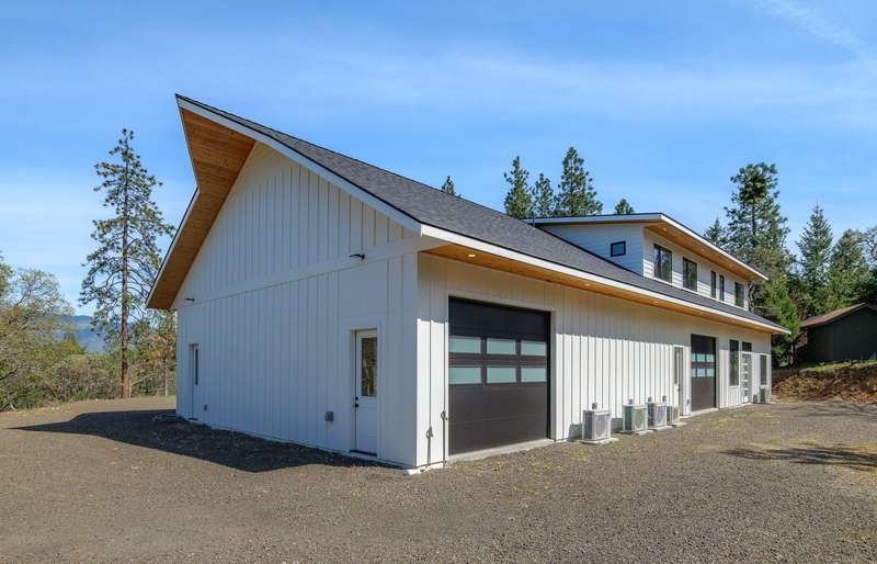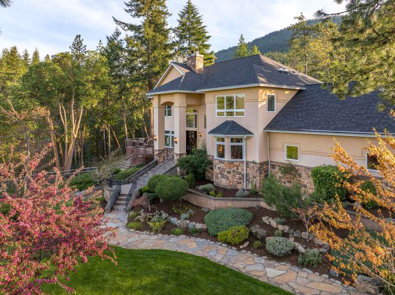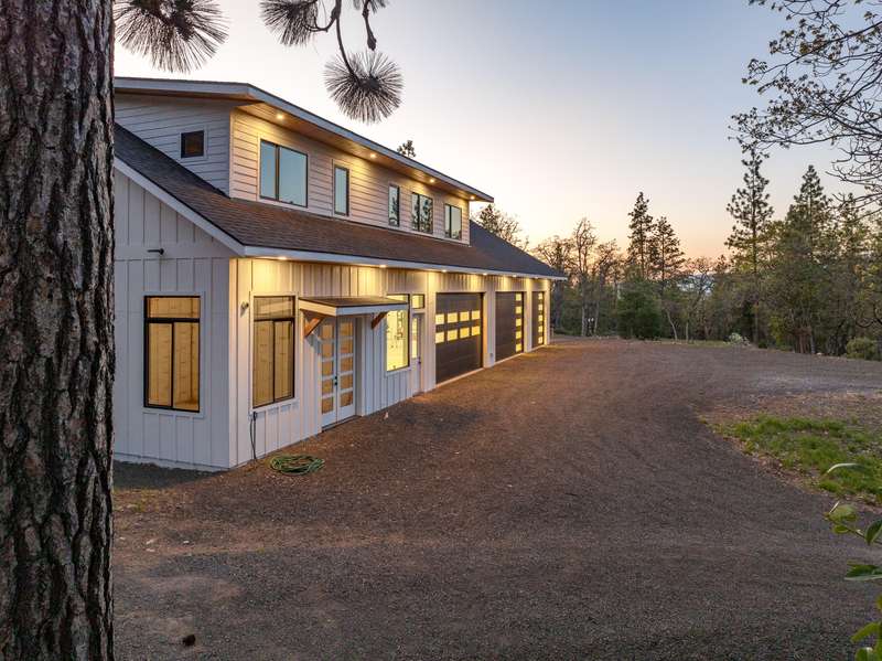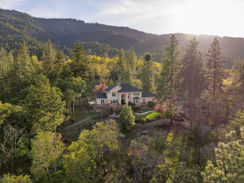 Just a short drive south of Ashland, Oregon, lies this private 22-acre retreat. This private estate features a custom home, a recently built 5,000+ sq ft shop with striking modern design, plus sweeping views of the mountains. Inside, the home welcomes you with a bright entry foyer, cathedral ceilings, and a Tulikivi soapstone stove. The modern kitchen is equipped with high-end appliances and flows seamlessly into the dining room and living area. The main level also includes a spacious guest bedroom, full bath, walk-in pantry, and utility room w/half bath. Upstairs, the primary suite offers a walk-in closet and luxurious private bath, accompanied by two additional bedrooms, a guest bath, and a 2nd laundry room. The shop includes flexible space for vehicles, hobbies, a gym, or workshop. Outdoors, enjoy 900 feet of Slide Creek, hike through the well-maintained forest, or unwind in the hot tub. This is a rare blend of seclusion, usable land, recreation, and convenience.