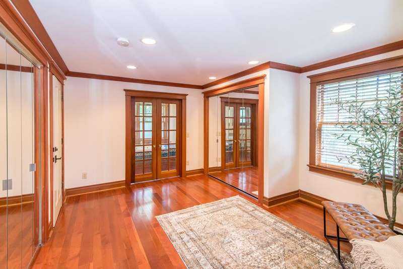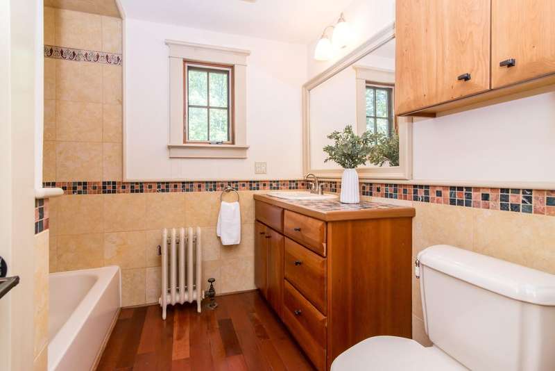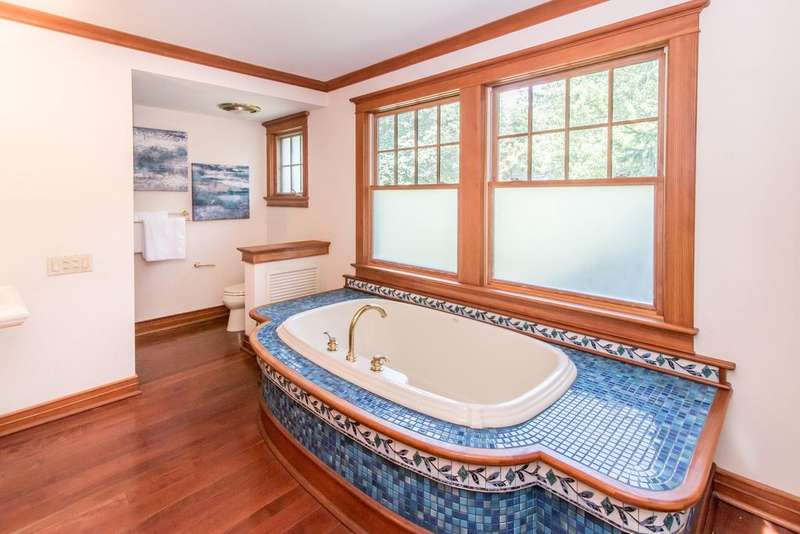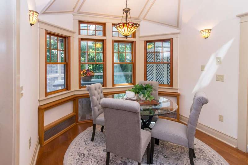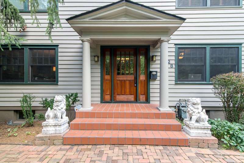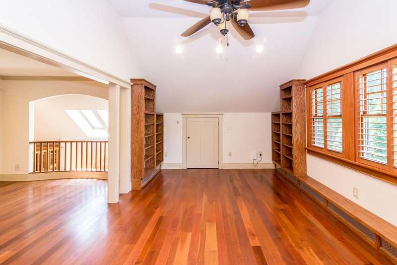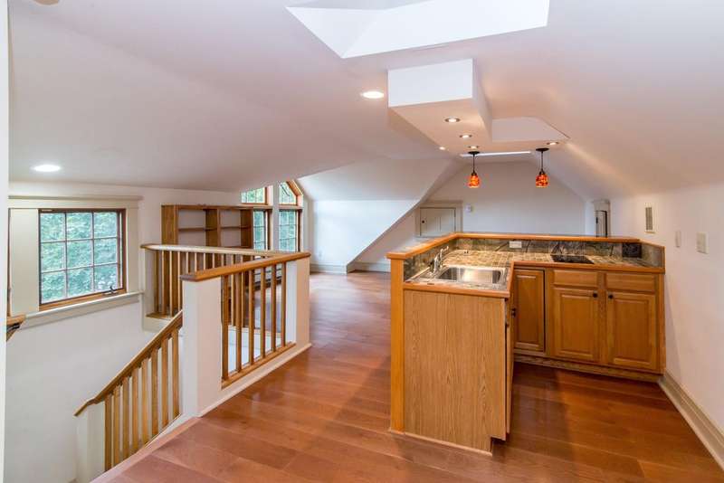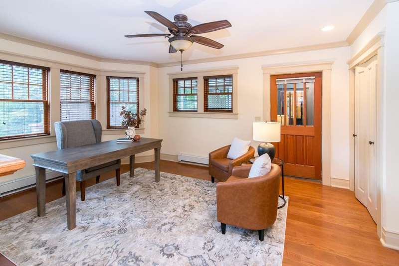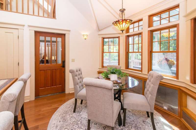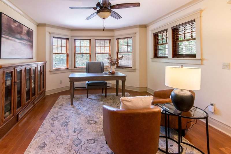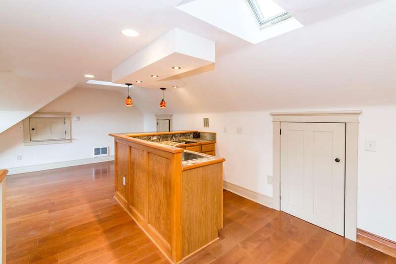 This home is for that special buyer who appreciates unique architectural features. French doors and custom-built cabinets with beveled glass. Hardwood floors throughout. 3300 sq. ft. of living space. Two bedrooms (one on the second floor/one on the third floor). Potential for two additional bedrooms on the second floor. Six bathrooms. The kitchen features tile counters and backsplash, warm oak cabinets, recessed lighting, and stainless-steel appliances, including two ovens. The cathedral ceiling eating area overlooks a covered porch and brick patio. Both the third floor and the basement have a full bath and a kitchenette. The primary bedroom suite features a cathedral ceiling and a spacious dressing room with ample closet space. Located on a lovely tree-lined street near the University. HERD Score: 3.