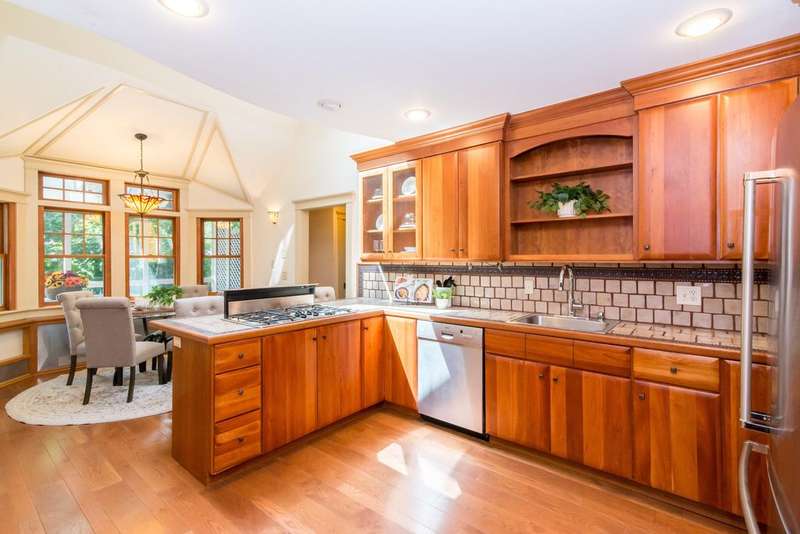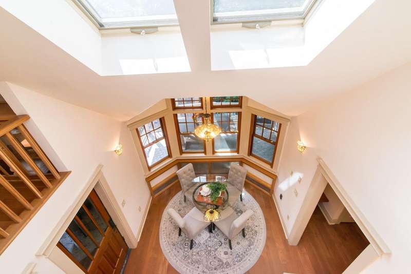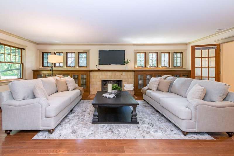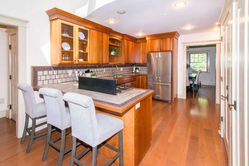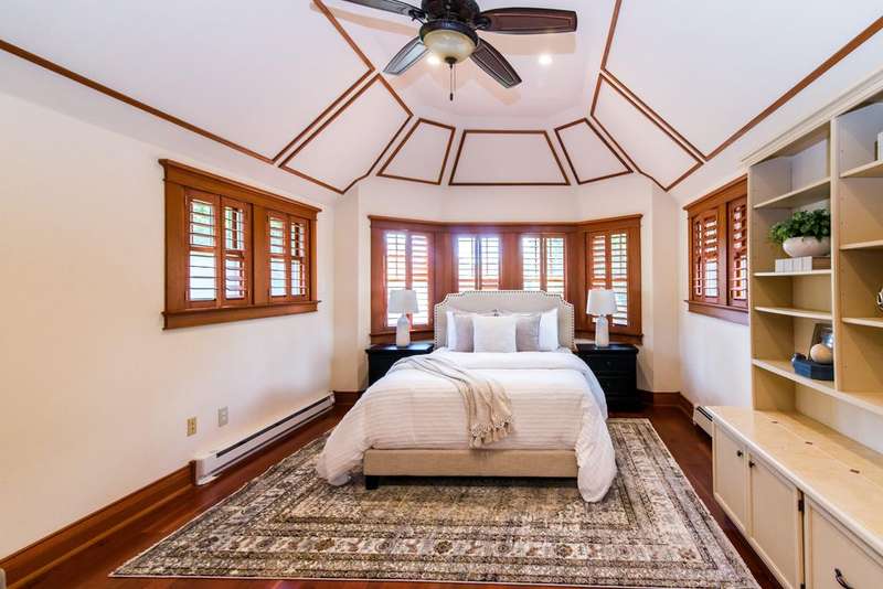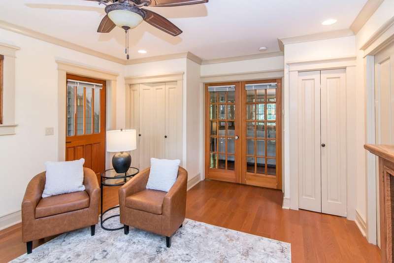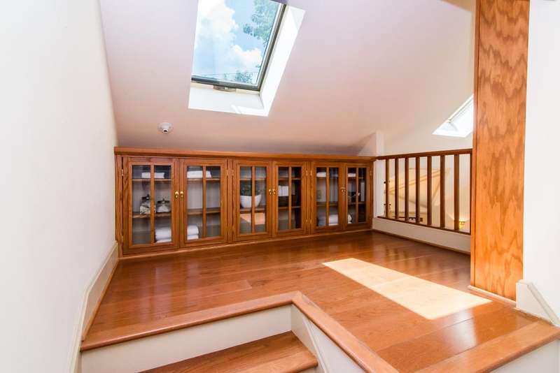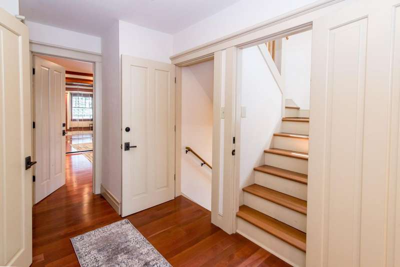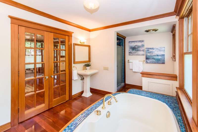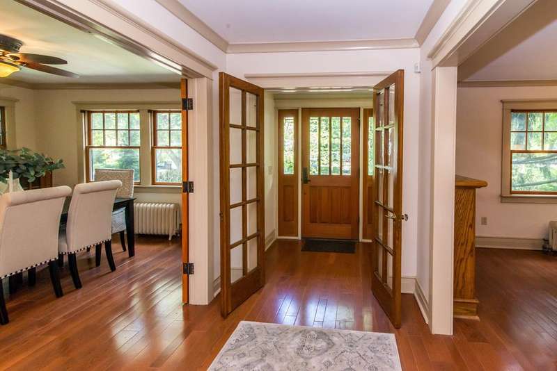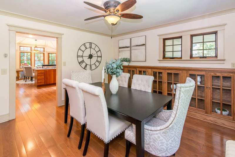 This home is for that special buyer who appreciates unique architectural features. French doors and custom-built cabinets with beveled glass. Hardwood floors throughout. 3300 sq. ft. of living space. Two bedrooms (one on the second floor/one on the third floor). Potential for two additional bedrooms on the second floor. Six bathrooms. The kitchen features tile counters and backsplash, warm oak cabinets, recessed lighting, and stainless-steel appliances, including two ovens. The cathedral ceiling eating area overlooks a covered porch and brick patio. Both the third floor and the basement have a full bath and a kitchenette. The primary bedroom suite features a cathedral ceiling and a spacious dressing room with ample closet space. Located on a lovely tree-lined street near the University. HERD Score: 3.