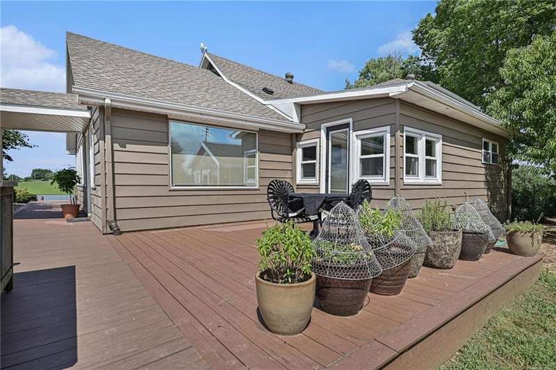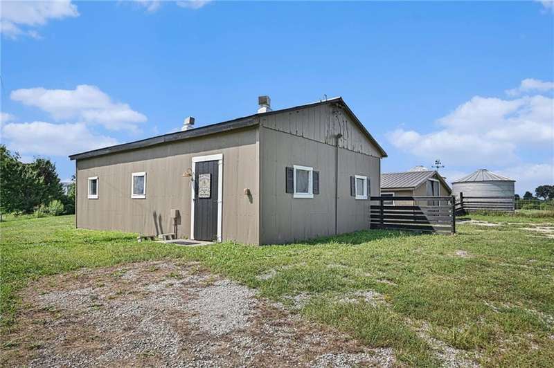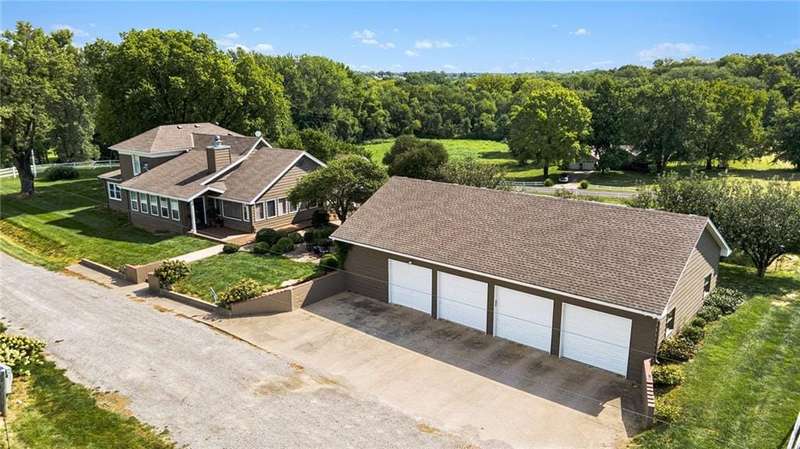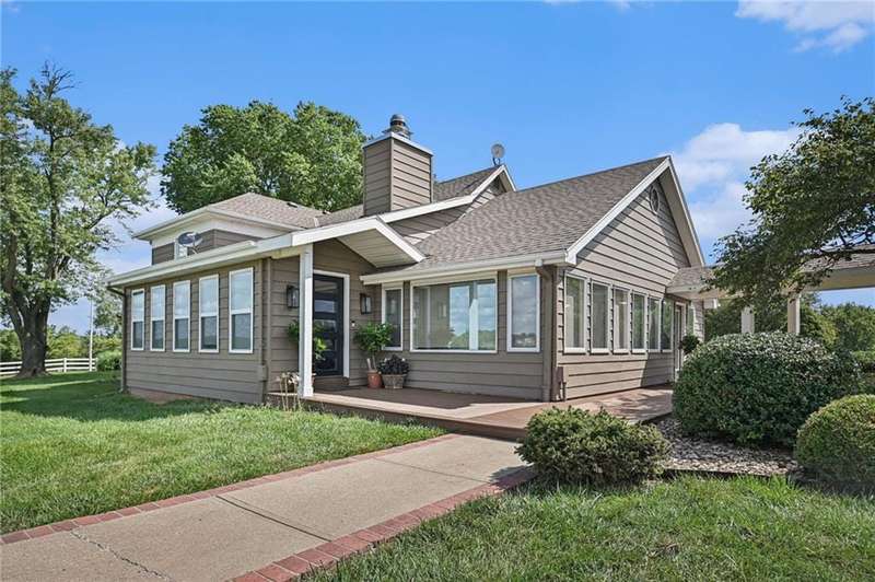 This gated property offers a unique blend of tranquility and modern living, situated on 29 picturesque acres with breathtaking views, including a 6-acre pond. The landscape features rolling hills and a variety of fruit trees, including apple, cherry, plum, pear, and peach. The equestrian enthusiast will appreciate the 7-stall horse barn equipped with electricity, a sheep barn and tractor barn, providing ample space for all your needs. A 4-car detached garage with large doors, perfect for SUVs and trucks, featuring a convenient 1/2 bath and an 8x12 concrete storm shelter for added safety. Enjoy outdoor living with covered patios and walkways leading to the garage, perfect for entertaining or relaxing. The home itself has been completely remodeled, featuring all new wiring and plumbing, a stunning kitchen with custom cabinets, high-end appliances, a butler's pantry area that any chef would adore. The primary bath and closet have also been fully renovated. The home features a newer roof, new HVAC , new windows, combining the charming character of an old farmhouse with the modern conveniences of today. The property is powered by GEOTHERMAL energy ensuring efficiency and sustainability. The pond is complete with a dock & stocked with bass, crappie, perch, and catfish. Experience the best of country living while being conveniently close to amenities and the airport. Don't miss this opportunity to own a slice of paradise!