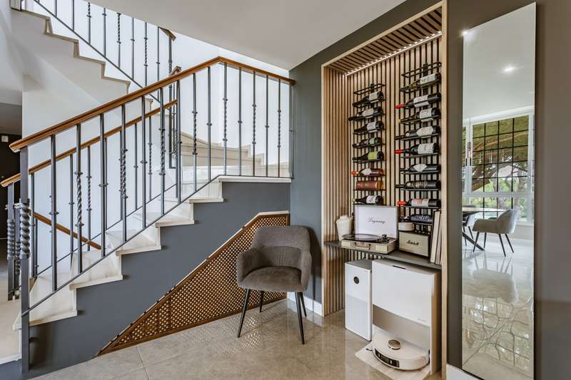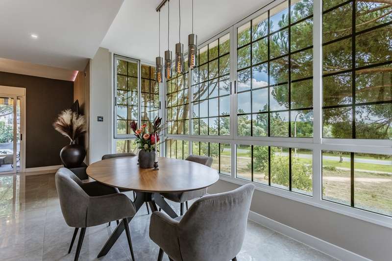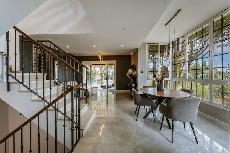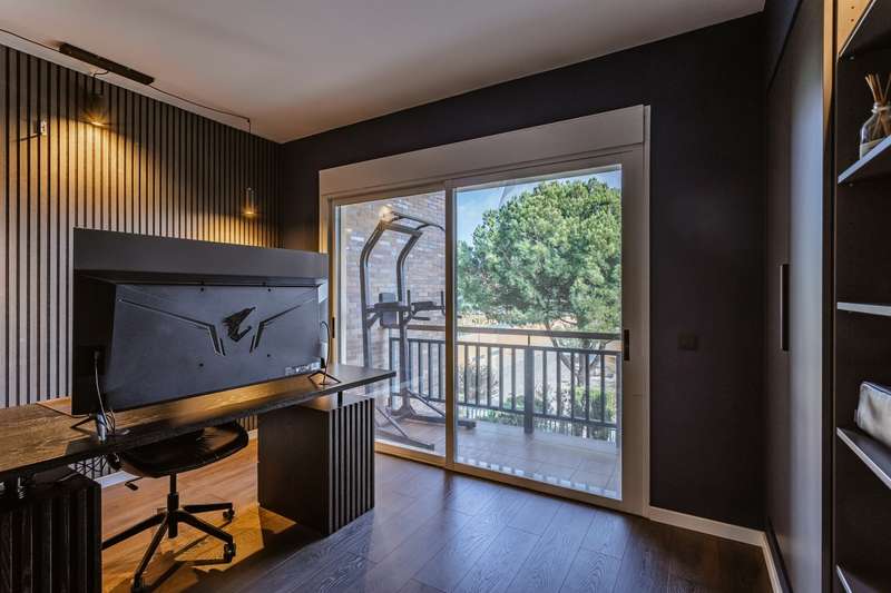 Elegant 3+1 bedroom townhouse, recently renovated, integrated into a private condominium and with privileged views over the lush grounds of the Millennium Golf Course. Located in an exclusive residential area of Vilamoura, in the prestigious Golden Triangle. Fully modernized and exquisitely decorated by an interior designer, the villa stands out for its harmony between comfort, sophistication and warmth - the ideal refuge for those looking for a contemporary yet warm home in the heart of the region. Equipped with an advanced home automation system, it allows remote control of lighting and air conditioning, ensuring convenience and state-of-the-art technology for a simple and intuitive daily life. On the ground floor, the entrance leads to a large, bright living room with a fireplace, a fully equipped modern kitchen and a guest bathroom with a laundry area. The large windows open onto an outdoor terrace with a barbecue area and an exclusive outdoor cinema. Going up to the first floor, there are two cozy bedrooms, one of them en suite, a second bathroom and a terrace overlooking the surrounding nature. On the second floor, there is a spacious office with panoramic views of the golf course, easily adaptable to an additional bedroom, accompanied by a large private terrace ideal for relaxing. Finally, the basement offers an additional bedroom with dressing room and en-suite bathroom, as well as a garage. The condominium also has a communal swimming pool, strategically positioned to ensure tranquillity and privacy. Surrounded by green areas and an atmosphere of absolute serenity, this villa is located just minutes from Vilamoura Marina, paradisiacal beaches , prestigious golf courses, the international college and a selection of excellent restaurants. It represents the perfect combination of comfort, exclusivity and the modern Algarve lifestyle. CHARACTERISTICS:Area: 184 m2 | 1 976 sq ft Useful area: 137 m2 | 1 471 sq ft Bedrooms: 3 Bathrooms: 4 Energy efficiency: E FEATURES: Townhouse 3 floors Basement Furnished and decorated Equipped kitchen Swimming pool and communal gardens Private terrace Private condominium