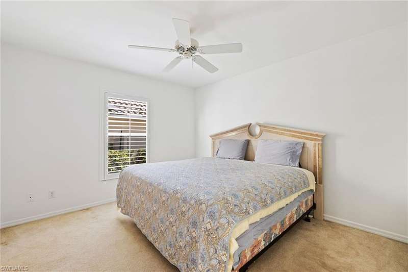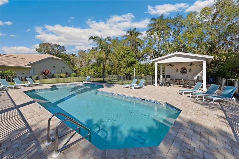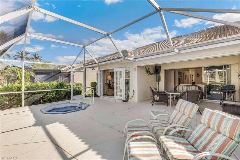 A true Gem with $883.00 HOA FEE ANNUALLY! Nestled in Mustang Villas on a cul-de-sac in beautiful Lely Resort. Three bedrooms, two bathrooms with an extended lanai & spa, and a view of the Golf course is a rare find. A new roof, A/C, new water heater, washer and & dryer, and electric shutters to the lanai will give you peace of mind in the coming years. Bay doors- and windows in the Master are hurricane-proof. The community pool is just steps away. Mustang Villas is a quiet, neat, friendly neighborhood that will make you feel at home and welcome. If you like, join and enjoy the Players Club with its three resort-style pools, Spa, fitness center, Tennis & Pickleball. Lely offers two public and one private golf course. Downtown, Fifth Avenue, with its international restaurants and the sugar white beaches, is just 15 minutes away.