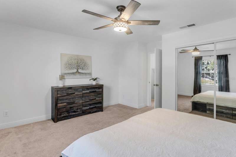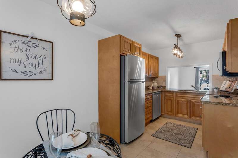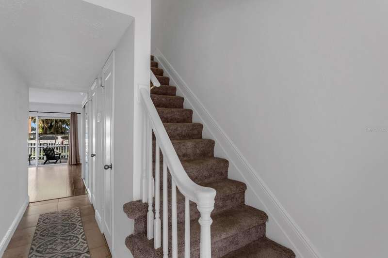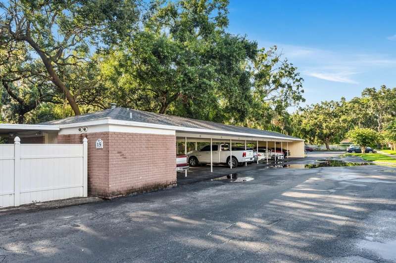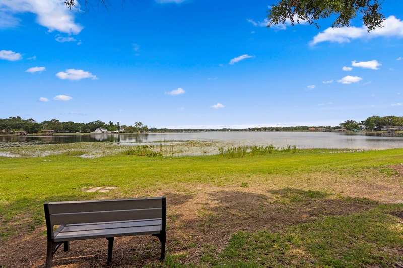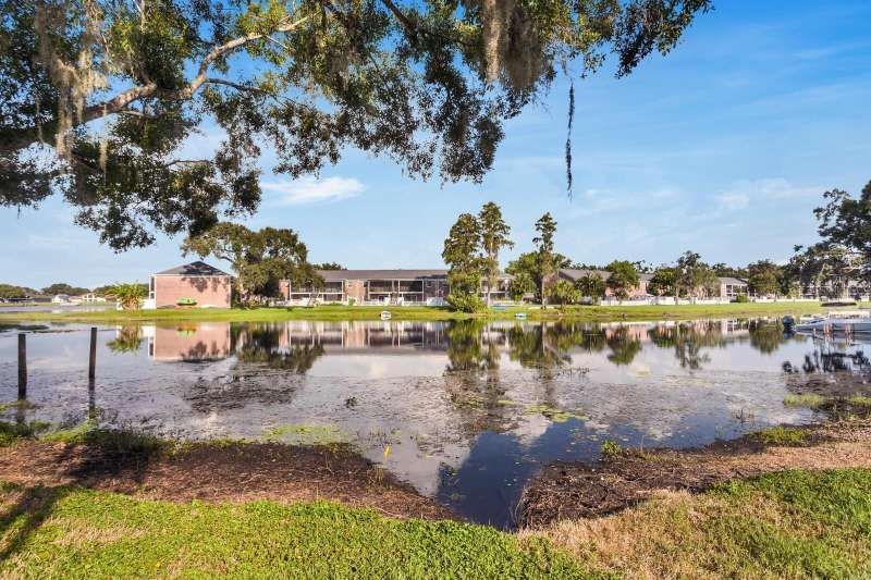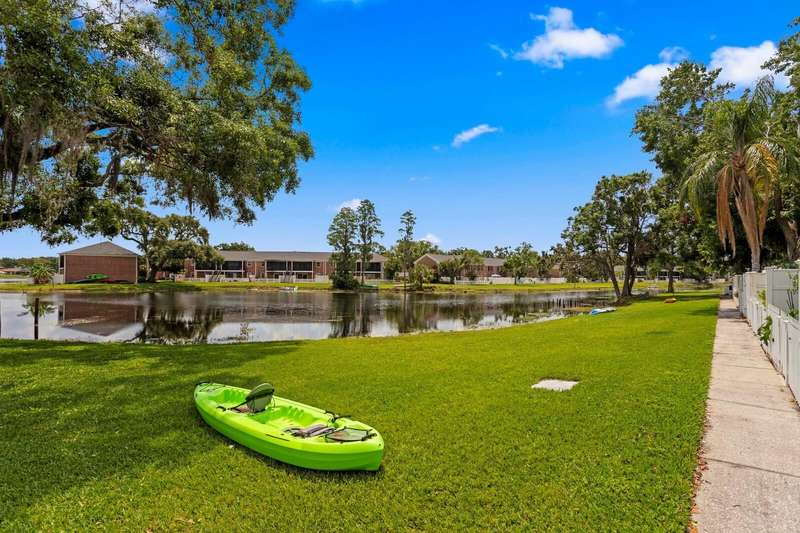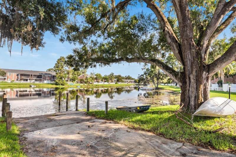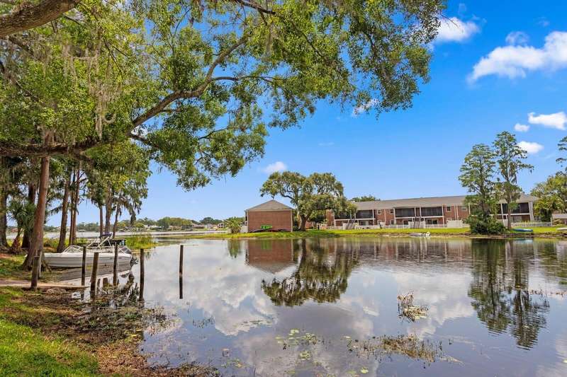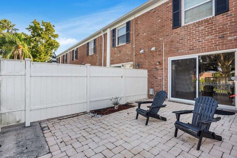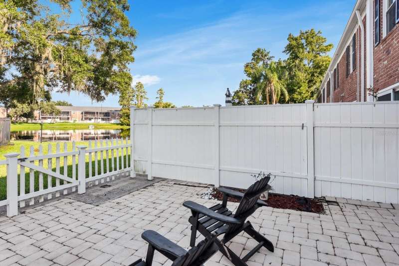 Welcome to this charming 2 Bedroom, 1.5 Bath, end-unit brick CONDO in the serene, gated Whispering Oaks community on Lake Magdalene. This well-maintained home offers peaceful LAKE VIEWS from both the family room and the primary bedroom. Inside, you’ll find an inviting eat-in kitchen with wood cabinetry, granite countertops, breakfast bar and stainless steel appliances (new in 2020). The family room features gleaming hardwood flooring, crown molding, and beautiful water views through sliders leading to the patio and water. Step outside to your private, fenced-in brick paver patio —perfect for relaxing or entertaining. A half bath and laundry closet with washer and dryer as well as under-stair storage complete the first level. Upstairs you'll find 2 generously-sized bedrooms with carpet. The primary bedroom overlooks the lake, and the second bedroom includes pull-down attic access for extra storage. The full upstairs bath has been stylishly renovated with tile flooring, a tub/shower combo, decorative vanity, and updated lighting. Additional upgrades include a new roof (2021) and new HVAC (2018). The Whispering Oaks community offers resort-style amenities including a pool, clubhouse, fitness center, boat ramp on this ski lake, car wash station, laundry facilities and a designated covered parking spot. Water and Sewer are included in the monthly HOA fee. Enjoy the quiet lakeside lifestyle just minutes from all the conveniences found in Tampa.