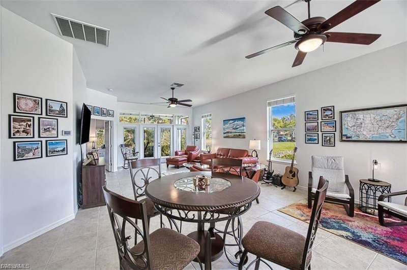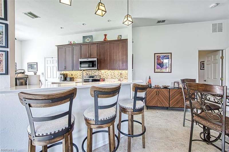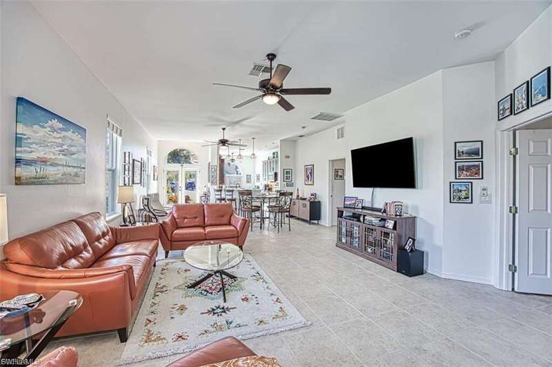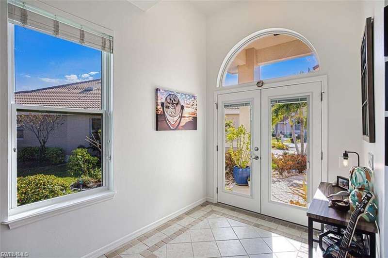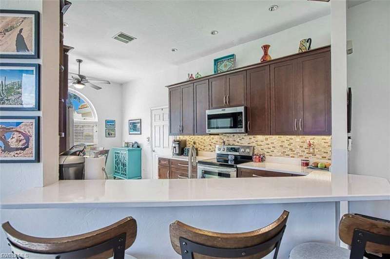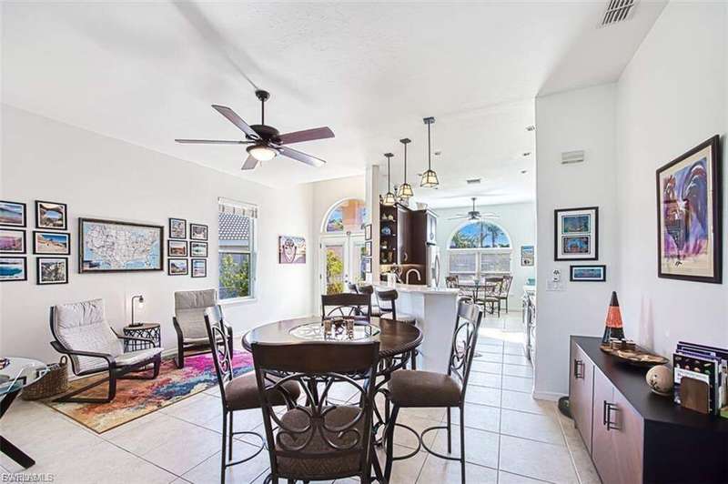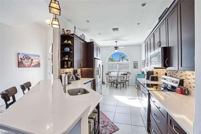 WELCOME HOME, BOATERS! Discover coastal living at its finest in this stunning single-family home nestled within the highly sought-after Caloosa Yacht & Racquet Club. Perfectly situated in a premier boating community. Inside, you're greeted by soaring ceilings and an open, light-filled floor plan that flows seamlessly throughout. The gourmet kitchen is a showstopper, featuring 42-inch custom wood cabinetry, sleek quartz countertops, and stainless steel appliances-perfect for cooking, entertaining, or simply enjoying your morning coffee. The primary suite serves as your private retreat, complete with a spa-inspired bathroom offering a soaking tub, dual vanities, and a spacious walk-in tile shower. Two additional bedrooms feature elegant wood plank tile flooring, while the main living areas showcase timeless tile throughout for easy, low-maintenance living. Step out to your screened lanai and take in the serene water views, an ideal setting for quiet mornings, evening gatherings, or sunset cocktails. For boating enthusiasts, the Riverside Marina offers direct Gulf access, competitive docking fees, and available slips on a first-come, first-served basis-an exceptional amenity that's hard to find in this location. This home also features a newer lanai, roof, impact doors, HVAC system, and fresh paint inside and out, giving you total peace of mind and move-in-ready comfort. Within the gates of this lush, private community, residents enjoy resort-style amenities, including a heated swimming pool, tennis courts, a scenic lakefront park, and exclusive access to the Blue Coyote Restaurant, a members-only culinary gem. Located just minutes from the McGregor corridor, you'll be close to shopping, dining, and all the best that Fort Myers has to offer. With its unbeatable combination of modern updates, elegant design, and coastal charm, this home isn't just a place to live-it's a lifestyle you'll love coming home to. Home has NOT had any flooding or damage from past storms!