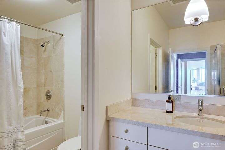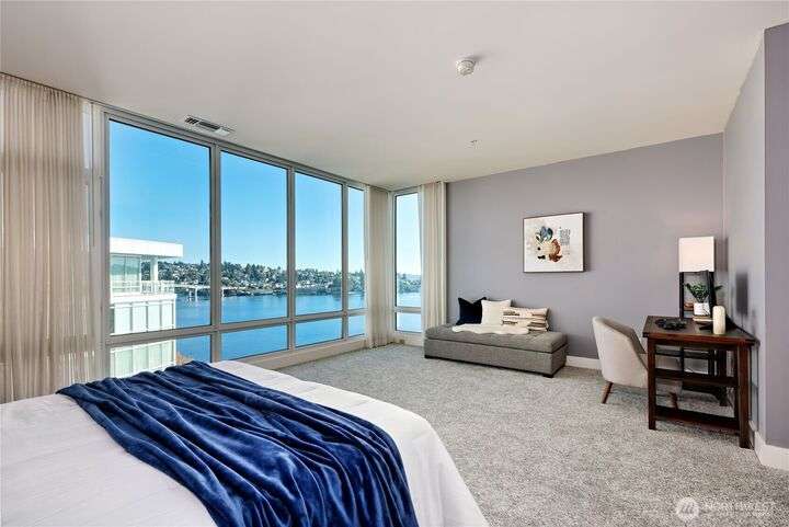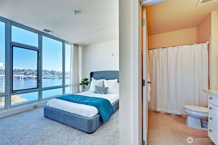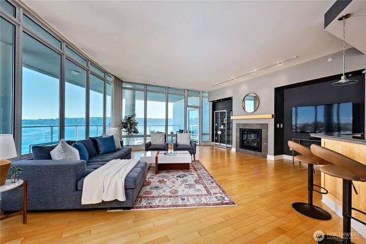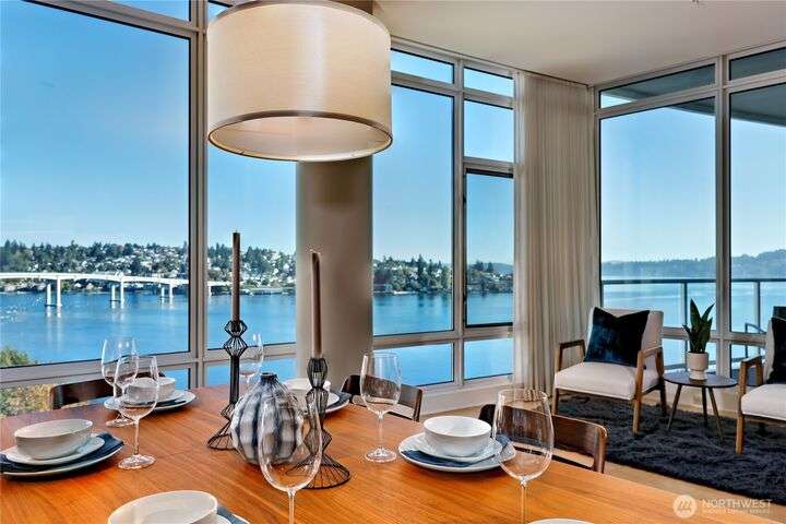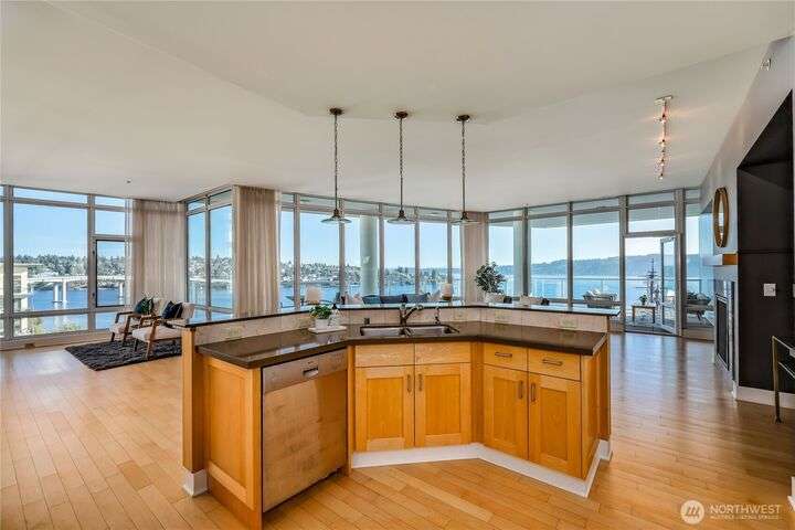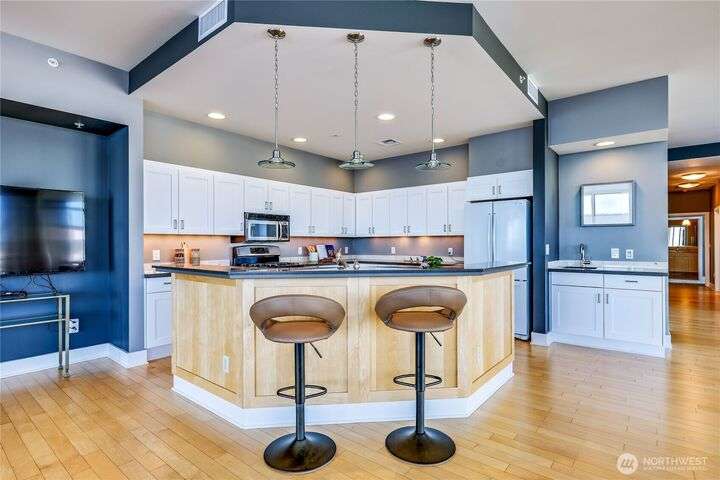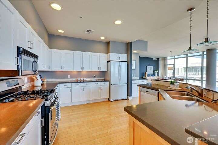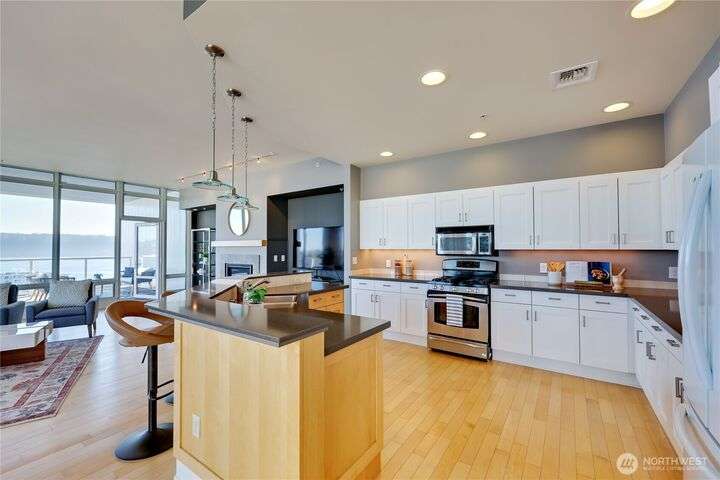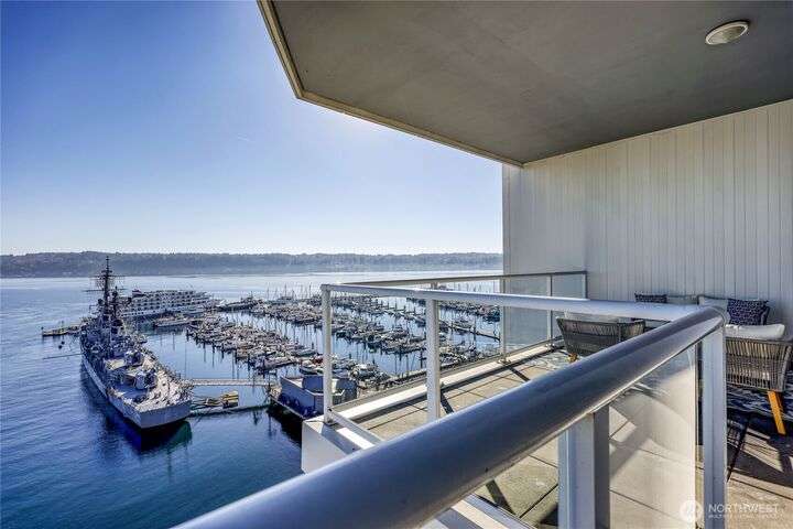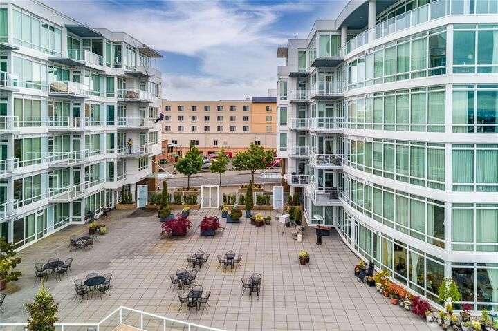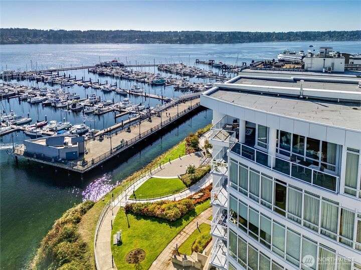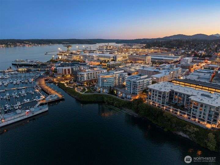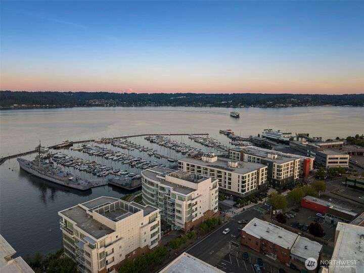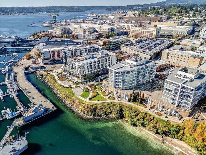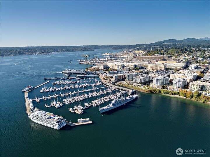 Harborside Penthouse perfection, where contemporary style meets coastal serenity. Bathed in natural light, this top-floor gem offers a refined escape with panoramic views of Puget Sound, Bremerton Marina, & Cascade Mountains. Soaring ceilings & floor-to-ceiling windows set the stage for open-concept living at its finest. Entertain in the spacious great room, gather around the sleek Caesarstone island, or unwind on the expansive water side balcony, your private perch above it all. Gently lived in, this meticulously maintained residence blends timeless design with modern comfort. Two secured parking spaces, private storage, and an unbeatable location just blocks from the Seattle ferry. This is the penthouse lifestyle you’ve been waiting for!