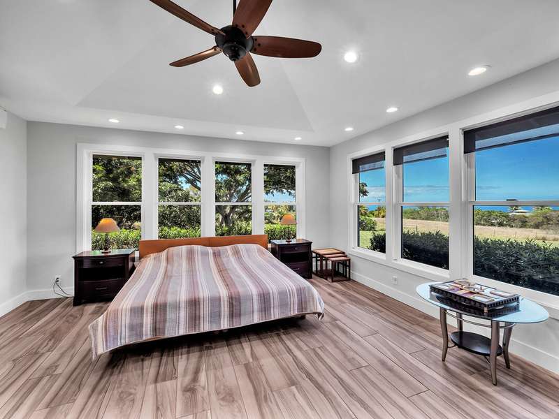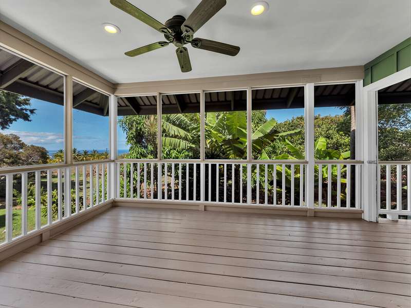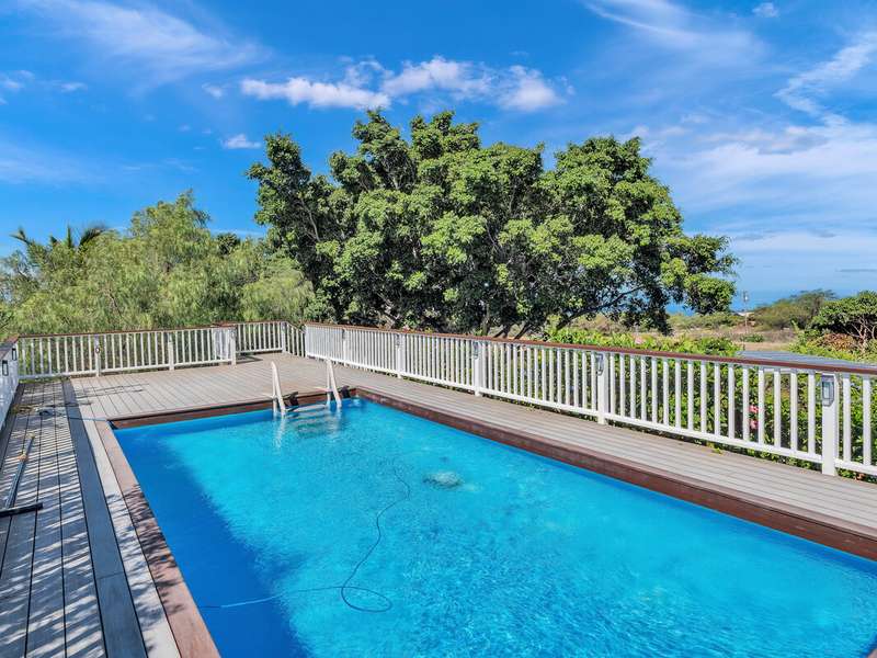 Hidden on a serene cul-de-sac, the lush driveway welcomes you into an environment that heals the soul. Ocean breezes, mountain views, abundant fruit trees, a refreshing pool, and lush flora frame 1.5 acres of sun kissed land overlooking the Kohala Coast.