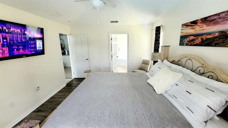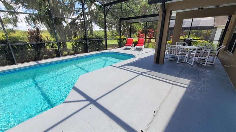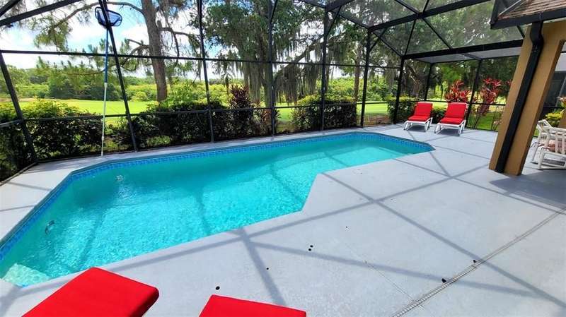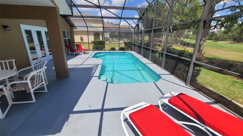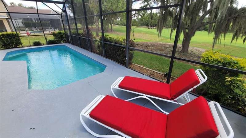 Under contract-accepting backup offers. NEW ROOF JUST INSTALLED JULY 2025. NEW R24 INSULATION AND CEILING PAINT-- DIRECTLY ON THE 12th FAIRWAY with expansive views & no rear Neighbors, located in the award-winning Southern Dunes ESTATES SECTION of the Golf and Country Club Community. SHORT TERM RENTAL/ AIRBNB SUCCESSFUL. DESIREABLE FLOOR PLAN WITH 2 PRIMARY BEDROOMS perfect for separate in-law suite. Nestled in a Cul-De-Sac on the Golf course, this home offers spectacular and calming views of the Greens from the comforts of a covered lanai with gorgeous pool area. Upon arrival at the property, you will notice the ample space in the driveway with the privacy and benefits of a cul-de-sac. The two-car garage offers additional parking space. Stepping into the home, you will be welcomed by a spacious well-lit living area with recently installed engineered hardwood flooring in some areas. Moving onto the kitchen, this has stainless-steel appliances with bright cabinets with easy access to both the living and family areas. The family room is bathed in sunlight and opens up to the pool area through the French doors. The property has a total of 4 bedrooms and 3 full baths. And features Two primary suites for the in-laws or private guest quarters. The other 2 bedrooms easily accommodate two twin beds each. The bedrooms and hallway have newly installed engineered flooring and recently painted exterior. The home has a well-manicured lawn with freshly painted exterior walls for aesthetic appeal. Brand new pool heater installed in January 2020. The home can be used as a primary residence, rented out long-term or used as a short-term AIRBNB vacation rental. Last but not least, the community has a manned security gate, a golf club house with shop and large restaurant with a full bar. Southern Dunes Golf and Country Club is located off US 27 and is close to Disney, Legoland and Peppa Pig Theme Park. Posner Park Shopping Mall is a short driving distance alongside other restaurants and shopping areas.