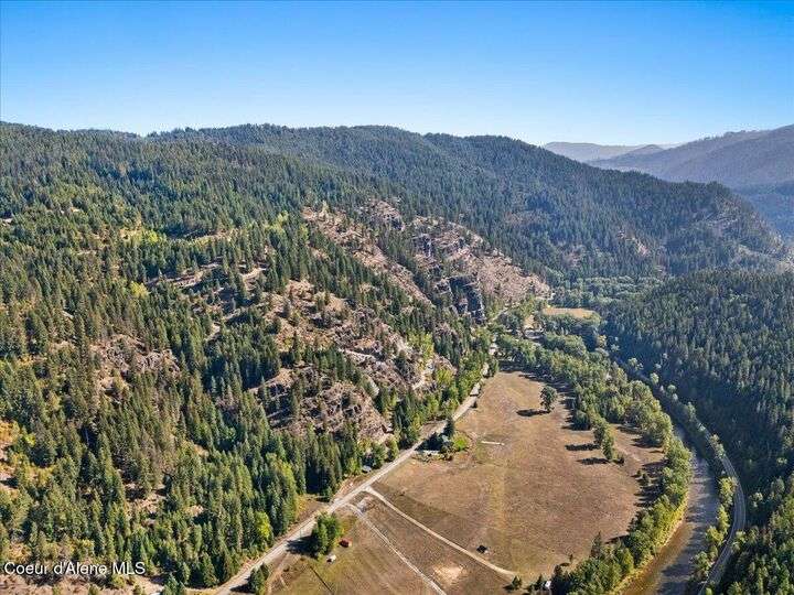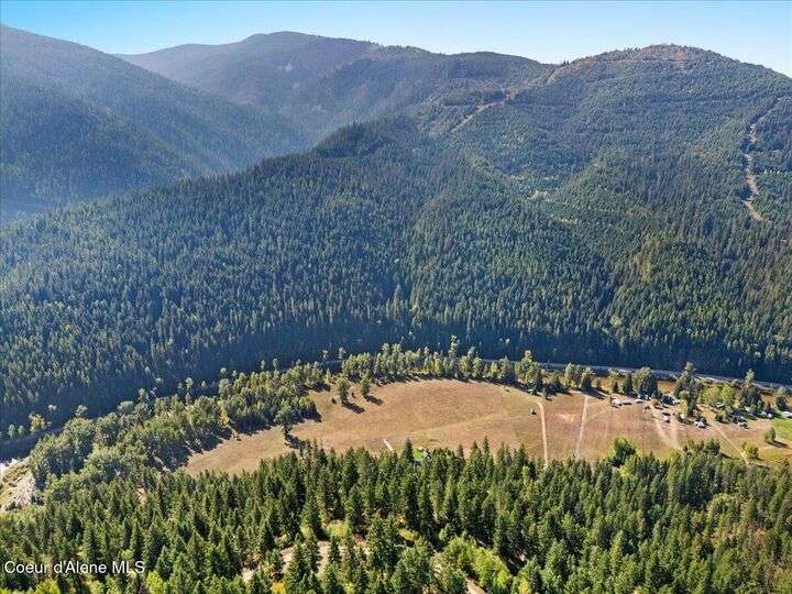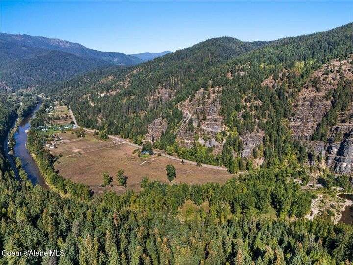 Discover an extraordinary 46.98 acre riverfront estate along the picturesque Coeur d'Alene River. This expansive parcel offers mostly level terrain—perfect for building your dream home, ranch or farm! Begin each day with sweeping, panoramic views across the river valley and beyond; sunsets here are nothing short of spectacular. Easy access off established roads, yet secluded enough to offer privacy and tranquility. This one of a kind property has 1,966 feet of frontage on the Coeur d'Alene River. With all the fishing you could ask for. This property grants both visual allure and potential for river?oriented enjoyment. Unspoiled surroundings with mature trees, native vegetation, and wildlife. The level ground makes farming and pasturing easy!
