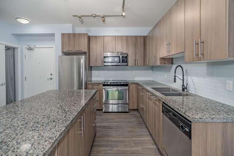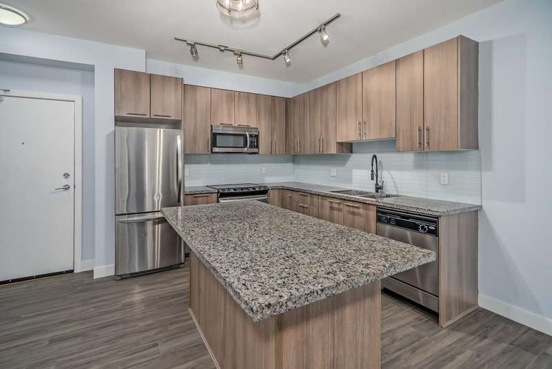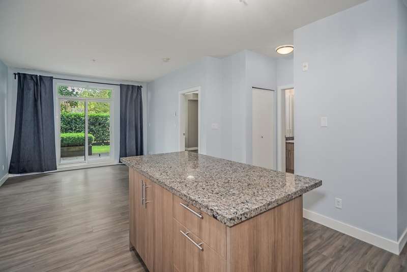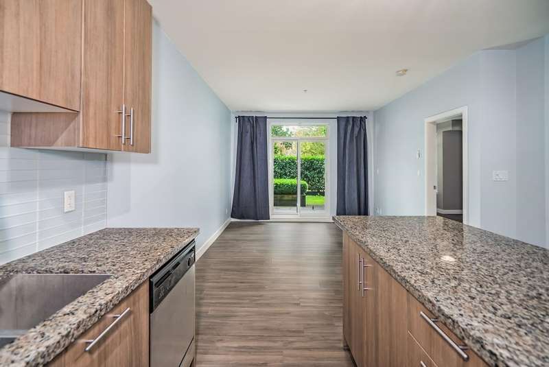 Investors & first-time buyers! Ground level unit offers 1 bed + den condo in East Central Maple Ridge. Great location as it’s steps to schools, shopping, transit, and parks. This bright, like-new home features an open concept layout with granite countertops, shaker cabinets, stainless steel appliances, and an island kitchen. Enjoy oversized windows, soaring ceilings, and a private covered walk-out patio. The spacious primary bedroom includes a walk-in closet and ensuite, while the den is ideal for a home office or flex space. Added perks: in-suite laundry, secure underground parking, bike room, large lobby lounge, and pet/rental-friendly living. Book your Private showing today!