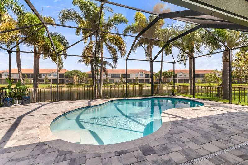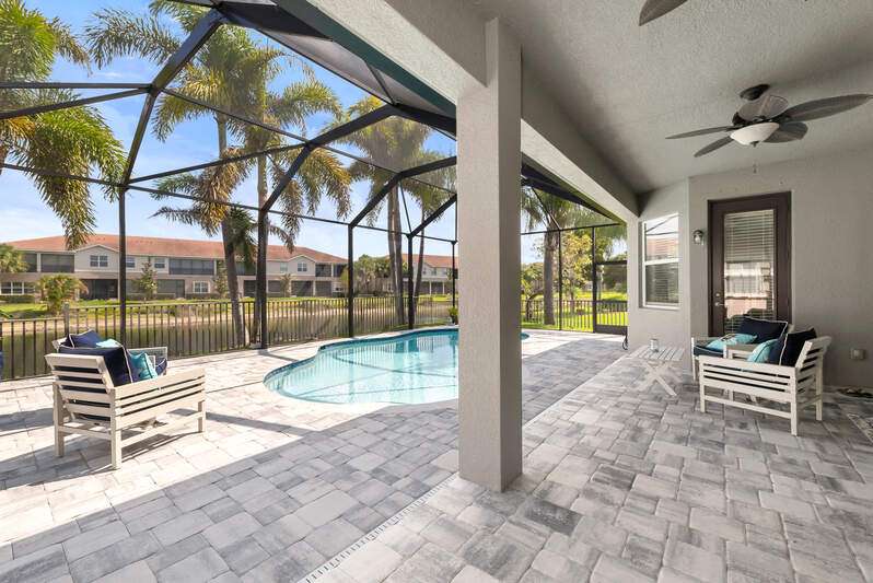 Stunning Lakefront Pool Home in Marbella Lakes - Fully Renovated with Over $250K in Designer Finishes and Upgrades! This 4bed + loft/den, 4-bath home offers Luxury living with Wide-Plank LVP flooring, 14' tray ceilings, and Crown molding throughout. The open-concept Chef's kitchen features White Shaker High End Wood cabinets, level 5 Quartz countertops, Monogram appliances, walk-in pantry, and a massive 8' Island. The spacious Primary suite boasts Lake views, a coffered ceiling, Dual Quartz vanities, a soaking tub, and a Glass barn-door shower. Enjoy the Newly resurfaced heated Saltwater Pool, new paver deck, and screened lanai-ideal for entertaining. Garage features custom SwissTrax flooring. Whole-home Water Filtration System included. Marbella Lakes offers low HOA fees with access to world-class amenities including a resort-style pool, modern fitness center, tennis and pickleball courts, basketball, billiards, a children's play area, and an active social calendar. Don't miss this rare opportunity to own a meticulously renovated lakefront pool home in central Naples-minutes from beautiful beaches, shopping, dining, and top-rated schools.