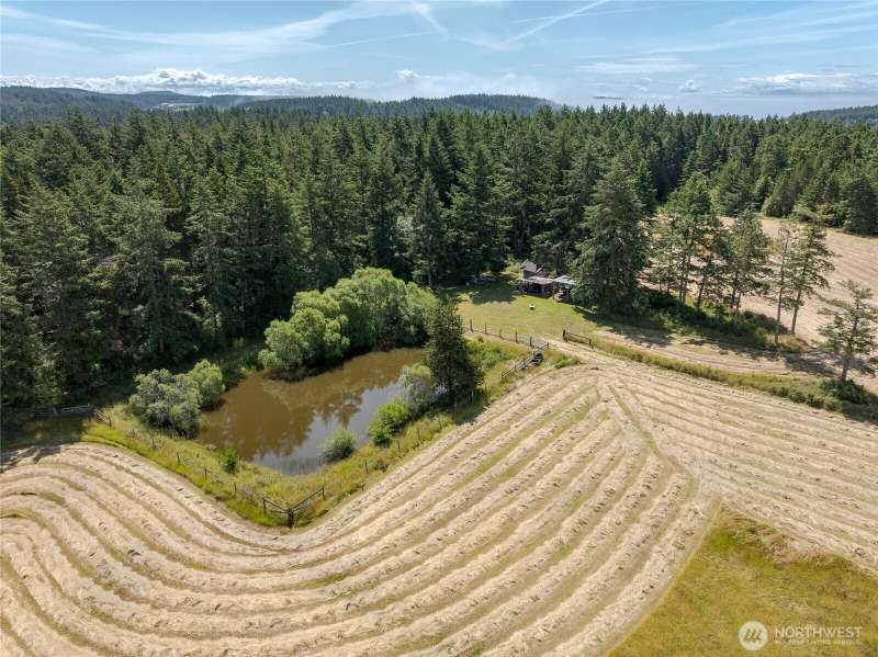 Pasture, Pond & Mature Woods. Discover this rare opportunity to own 30 beautiful, sunny acres of versatile land in the heart of Lopez Island, offering sweeping territorial views across neighboring farmland and the tranquility of island living. A private drive through mature woodlands leads to a fully fenced pasture complete with serene pond and good drilled well at 8gpm. The rustic camp area is all you need while you make your plans. Whether you're looking to grow, graze, build or retreat---this property offers endless possibilities.