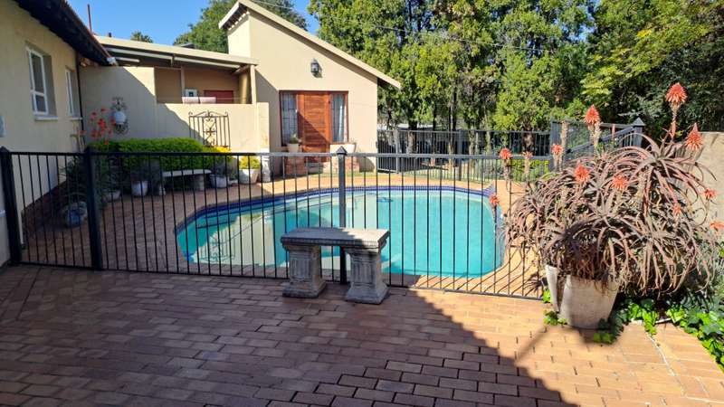 4 Bedroom family home with garden flat This family home is situated in the sought after Waterkloof Ridge in a secure quiet street. The large open living area has a fireplace ideal for cozy winter nights. The living area opens to a sparkling pool and a patio for outdoor entertaining. The farm style kitchen is spacious with a gas stove and concrete shelving. The study can be used as a work from home office space. The bedrooms are spacious and there are two additional bathrooms for guest or the kids. The main bedroom has an additional room that can be used as a pyjama lounge or a baby room. The main bedroom has an en-suite bathroom. There is an additional one-bedroom flat in the lovely garden. This home has a solar system, gas geysers and water tanks. Located close fantastic schools, shopping centres and main roads. Call me to view your forever family home!