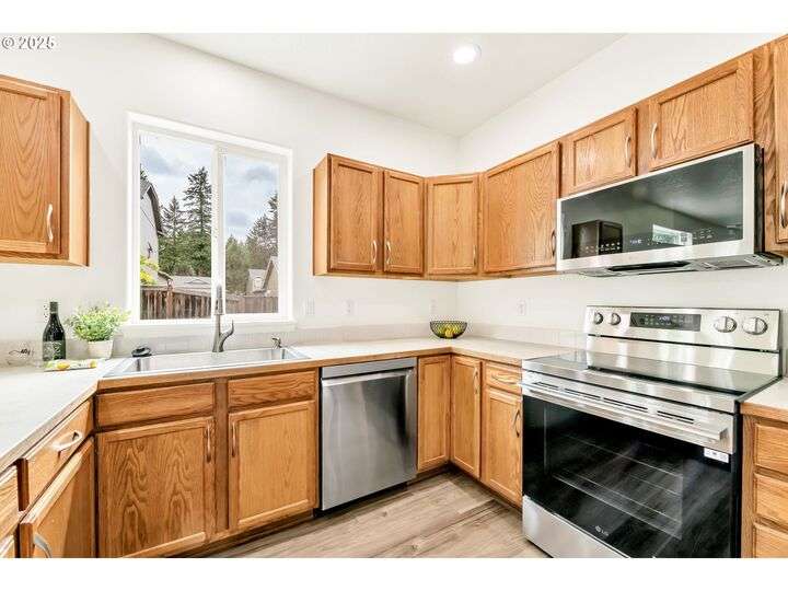 Just like new! Four bedroom home is one of the best values in Lane County just ten miles west of Eugene in Veneta. ALL BRAND NEW: roof with warranty, LVP flooring on the main level, new carpet on stairs and throughout the second level excluding the bathrooms, new water heater, new LG upgraded Stainless Steel appliances ( DISHWASHER, MICROWAVE, STOVE/ OVEN & REFRIGERATOR.) Entire interior and exterior has been freshly and professionally painted, NEW toilets, light fixtures, sinks, faucets, new LED ceiling lights throughout, new hardware on cabinets. NEW Smart doorbell, Smart front door lock, new patio pergula, fresh mulch throughout the exterior. This lovely home has a generously sized bonus area that offers many options as needed. The home is comfortable with a heat pump. Pride of ownership is on full display!
