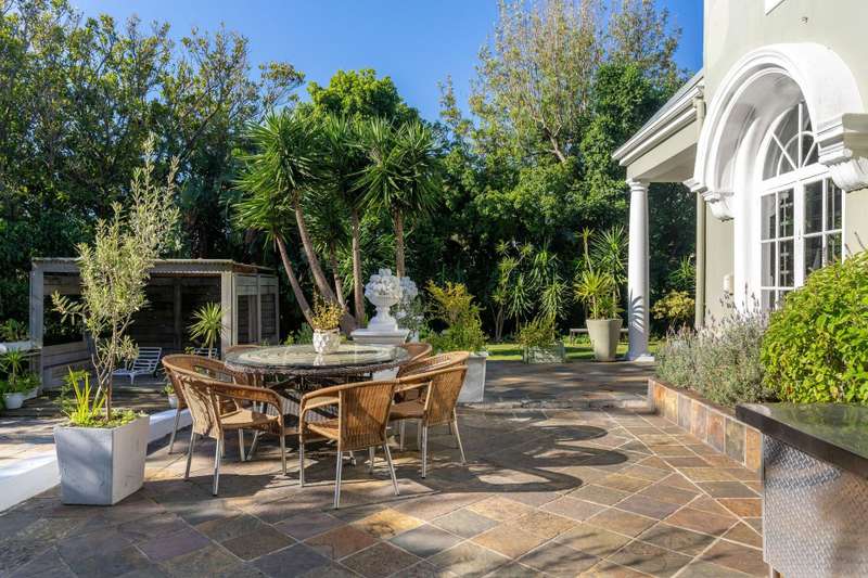 Experience TIMELESS ELEGANCE in this splendid Manor home with high ceilings and grand, fireplaces in most of the rooms. Located in a sought-after Fresnaye, this residence seamlessly combines classic charm with modern comfort. As you enter through the gates, you'll be greeted by a beautifully landscaped landscaped front garden with a gazebo and a sparkling swimming pool, creating a serene oasis. The grand entrance hall features a private lounge area with a bar and a classic fireplace, perfect for cozy evenings. The spacious dining hall with high ceilings is ideal for hosting large gatherings. The dining hall has french doors that open onto an undercover entertainment terrace and a sunny patio overlooking the garden and pool set in beautifully serene surroundings. The substantial kitchen is a chef's dream, and there are separate laundry and scullery areas. Upstairs, a staircase leads to four spacious bedrooms, each with its own en-suite bathroom and fireplace. Two of the bedrooms have private sunny balconies and the master en suite is grande and offers a gorgeous double-sided gas fireplace, reading lounge and doors leading out to small Juliette balcony. Notable features include ample storage space, an inverter for uninterrupted power supply, excellent security, wooden flooring, a double garage and covered parking for up to four vehicles in the driveway. Don't miss the chance to make this exceptional Manor home yours. Schedule your private viewing today with Cathryn New