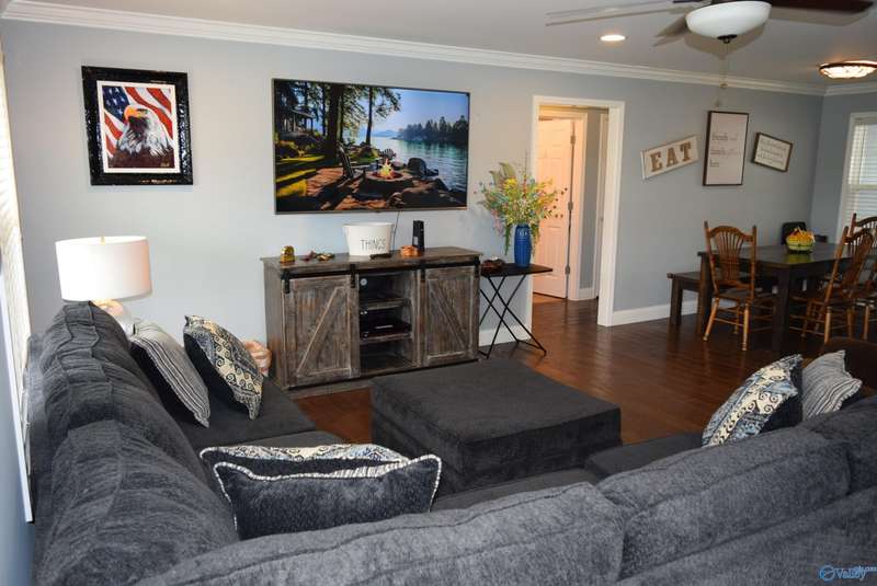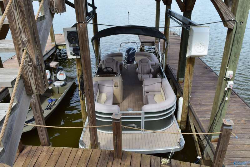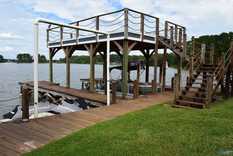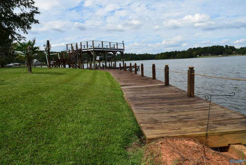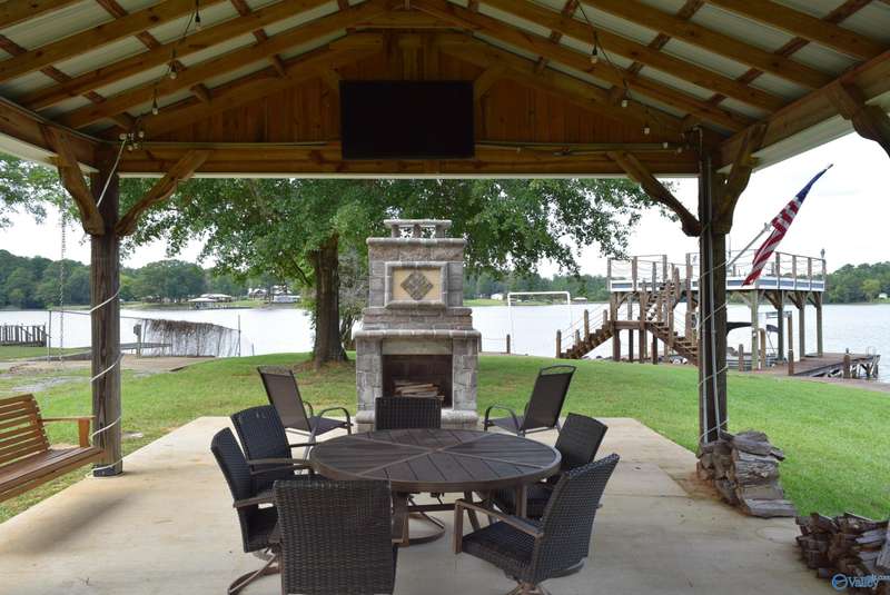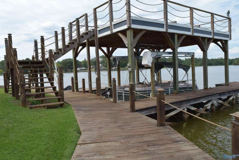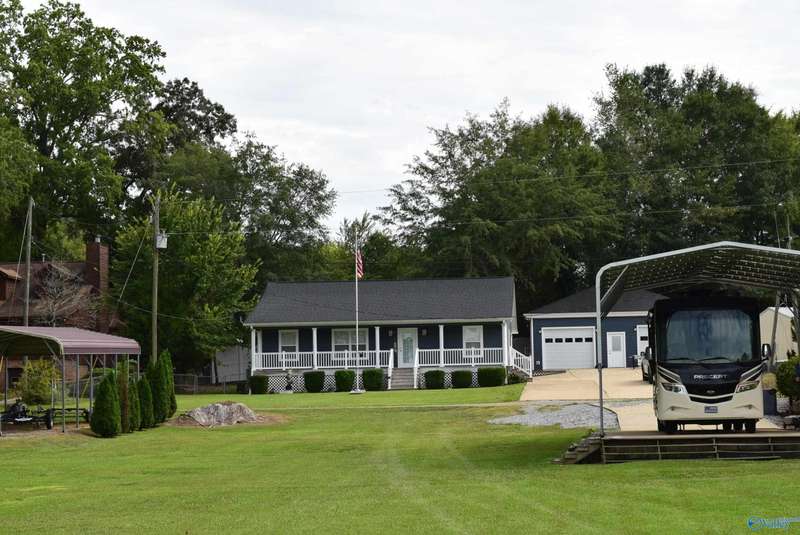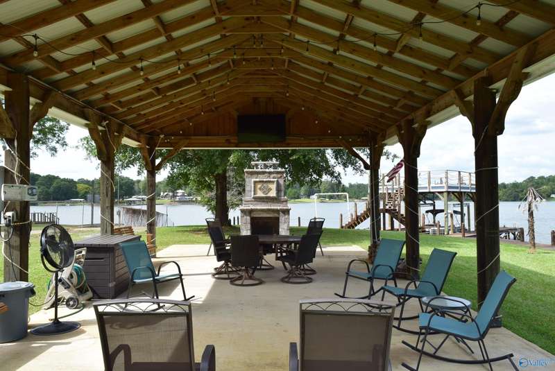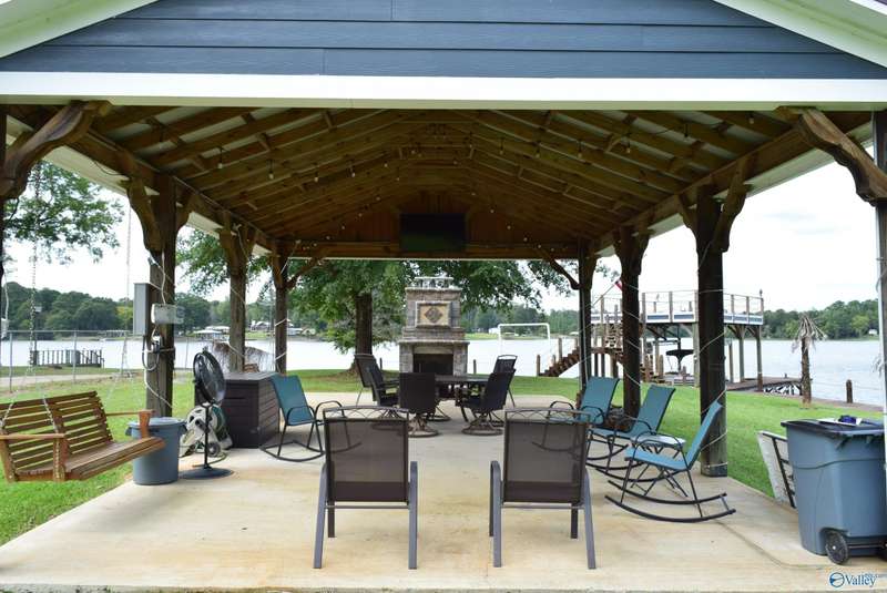 Discover your own personal paradise with this private resort on Lake Logan Martin. This charming home is a lake lover's dream come true, complete with an RV pad with 30&50 amp hook up, a pavilion featuring an outdoor fireplace, and a boat house with sun deck, pontoon lift, and wave runner launch pads. Enjoy direct access to the water via the home's private boardwalk and boat launch. The beautifully appointed kitchen is perfect for entertaining, while the spacious living room offers plenty of room for relaxation. The master bedroom features a custom tile shower and walk-in closet. Additional amenities include a large front porch, back porch, and fenced backyard.